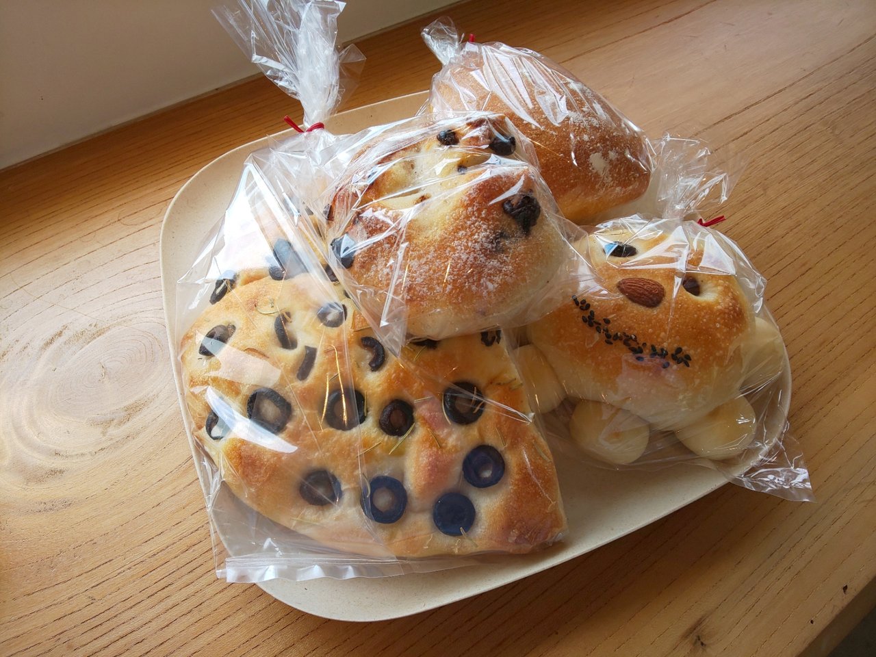 左のオリーブパンが、大きくて気になる🎵