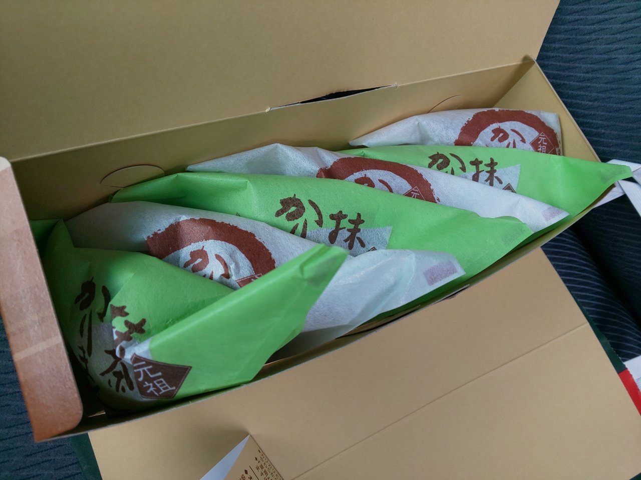 我慢出来ずに、お店の駐車場🅿️にて、漏れなく助手席で広げる人っ…💦相方が、いつの間にか?抹茶クリーム大福を買ってたっ🥰