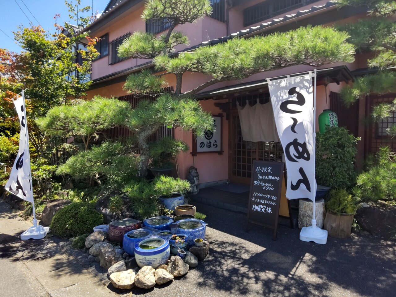 お鮨屋さんに、ら~めんの幟🧐