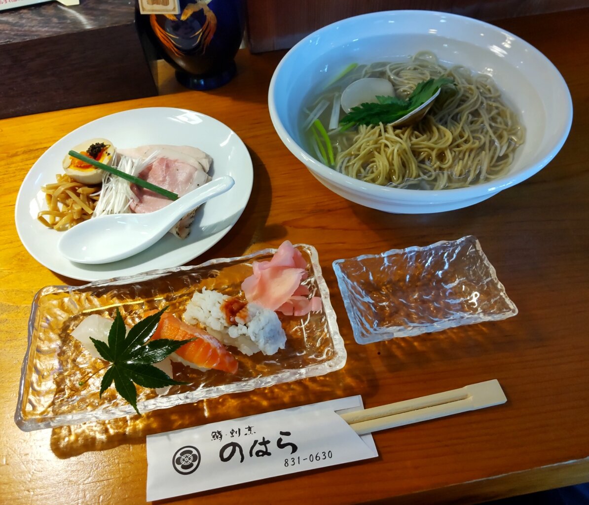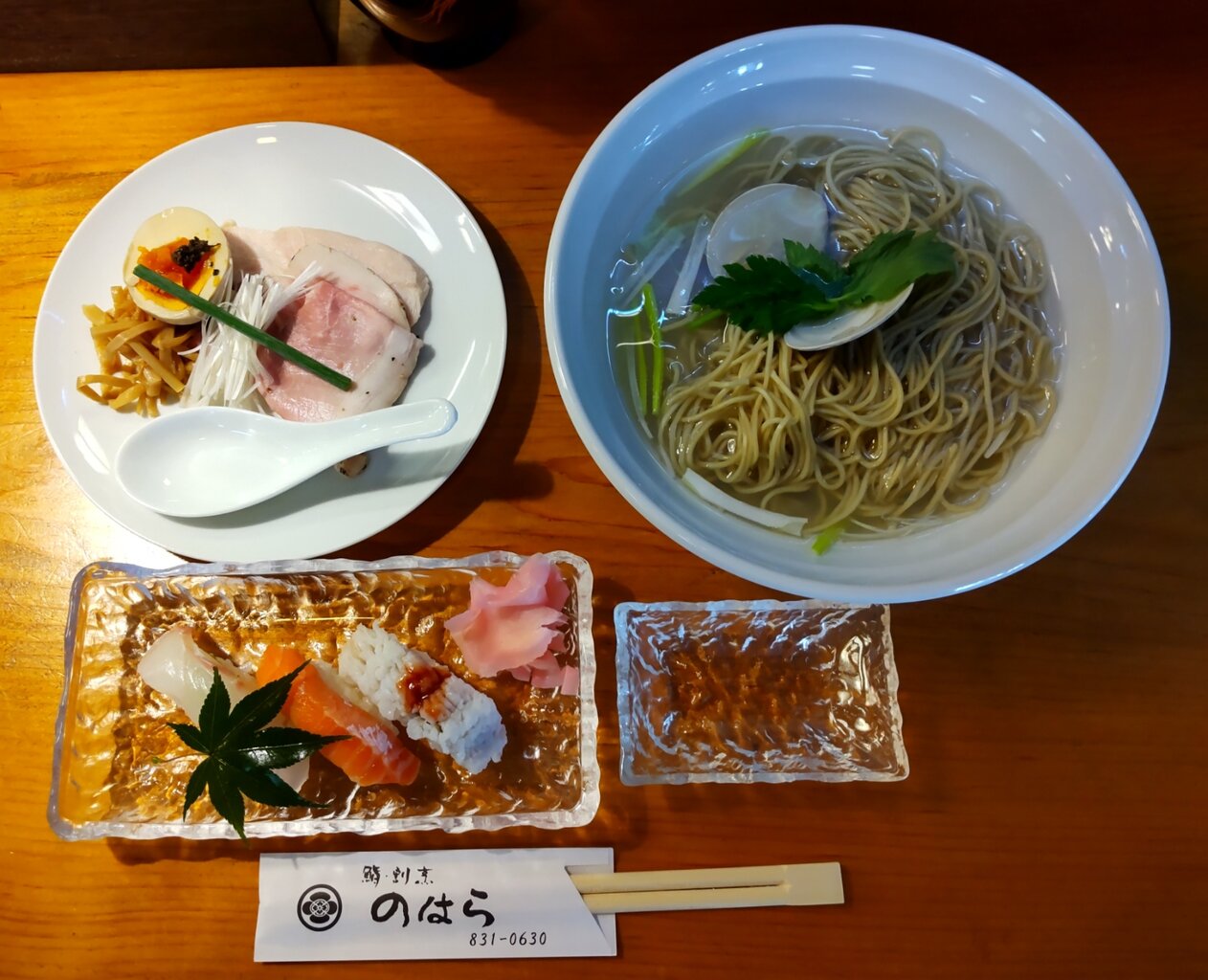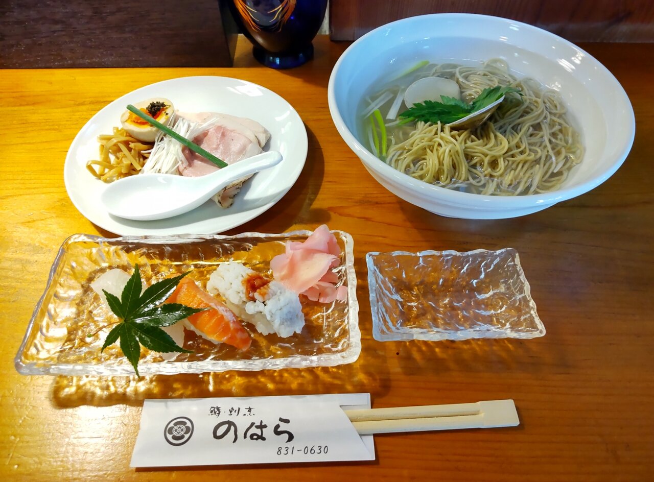 蛤らぁ~めんの塩、セットで、寿司3貫にしました🍀📋️