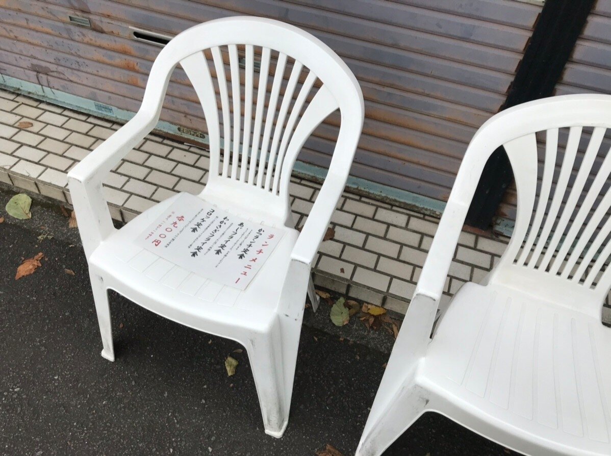 お外の椅子5個で座って待ちます📝