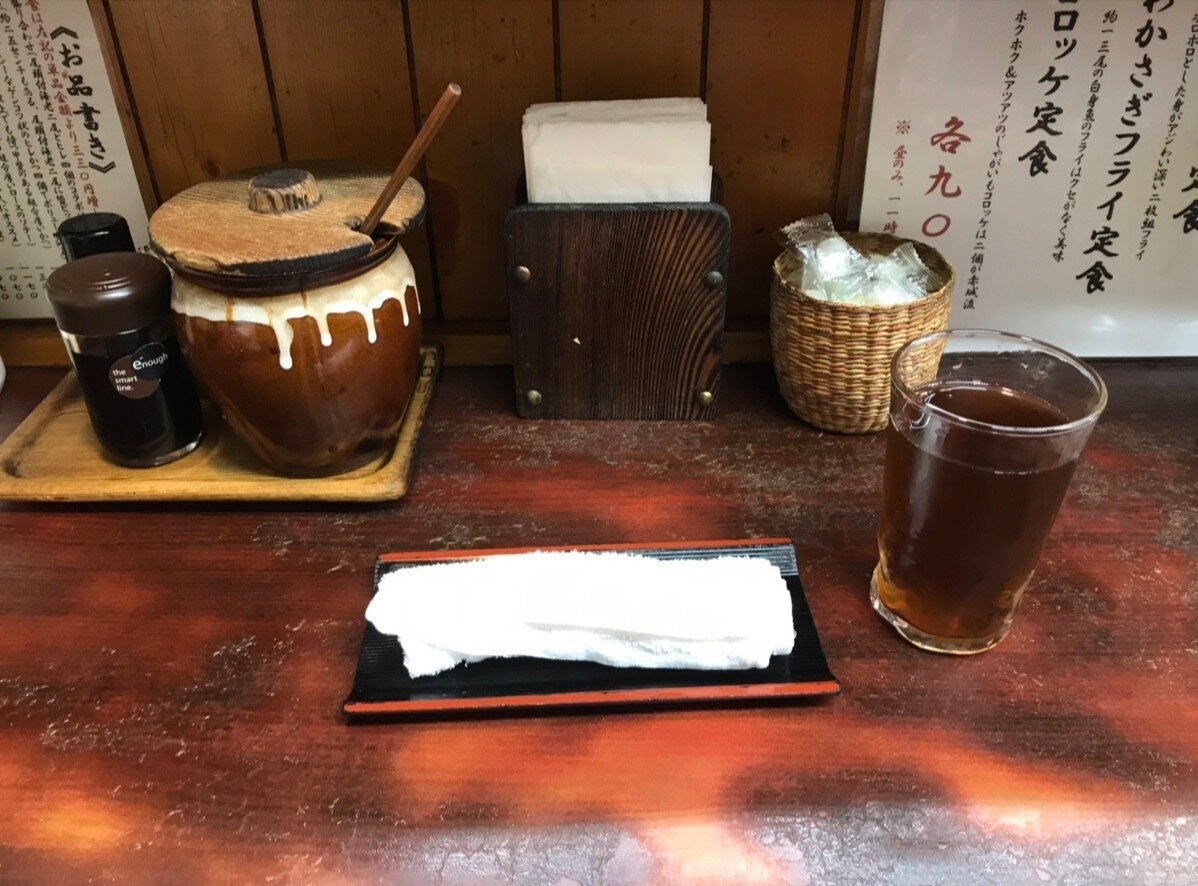 麦茶と、おしぼりと飴ちゃんも有りました🎵