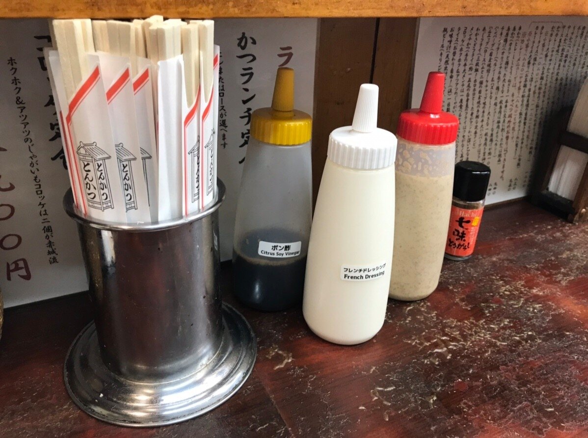 キャベツ用のポン酢、フレンチドレッシング、胡麻ドレッシングの3種🎵