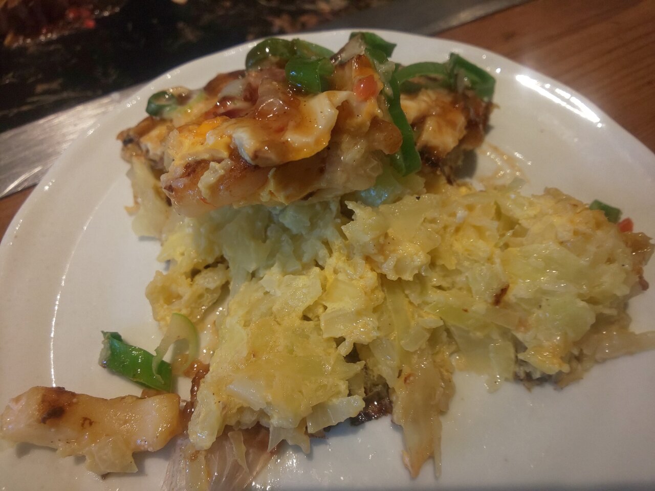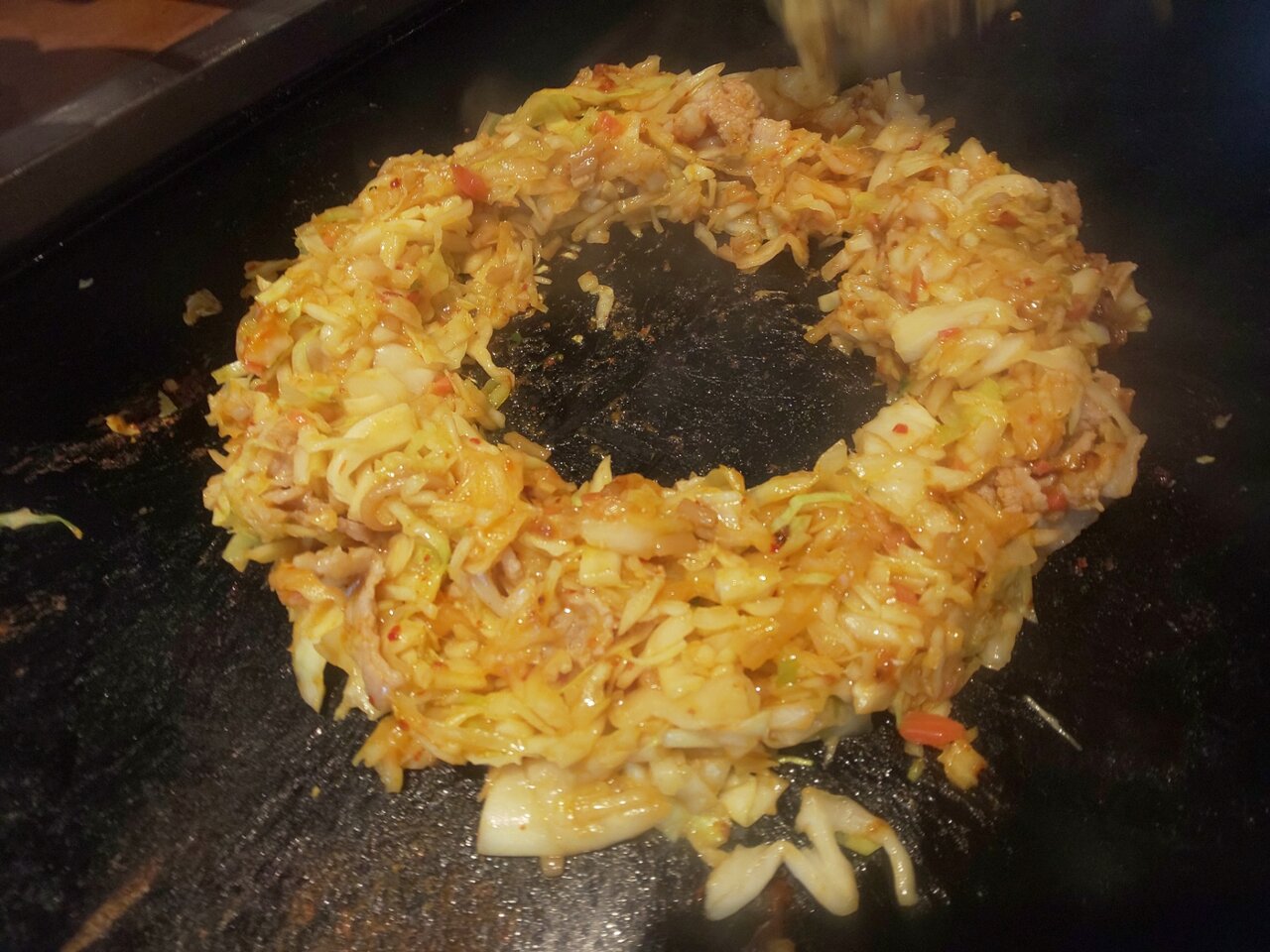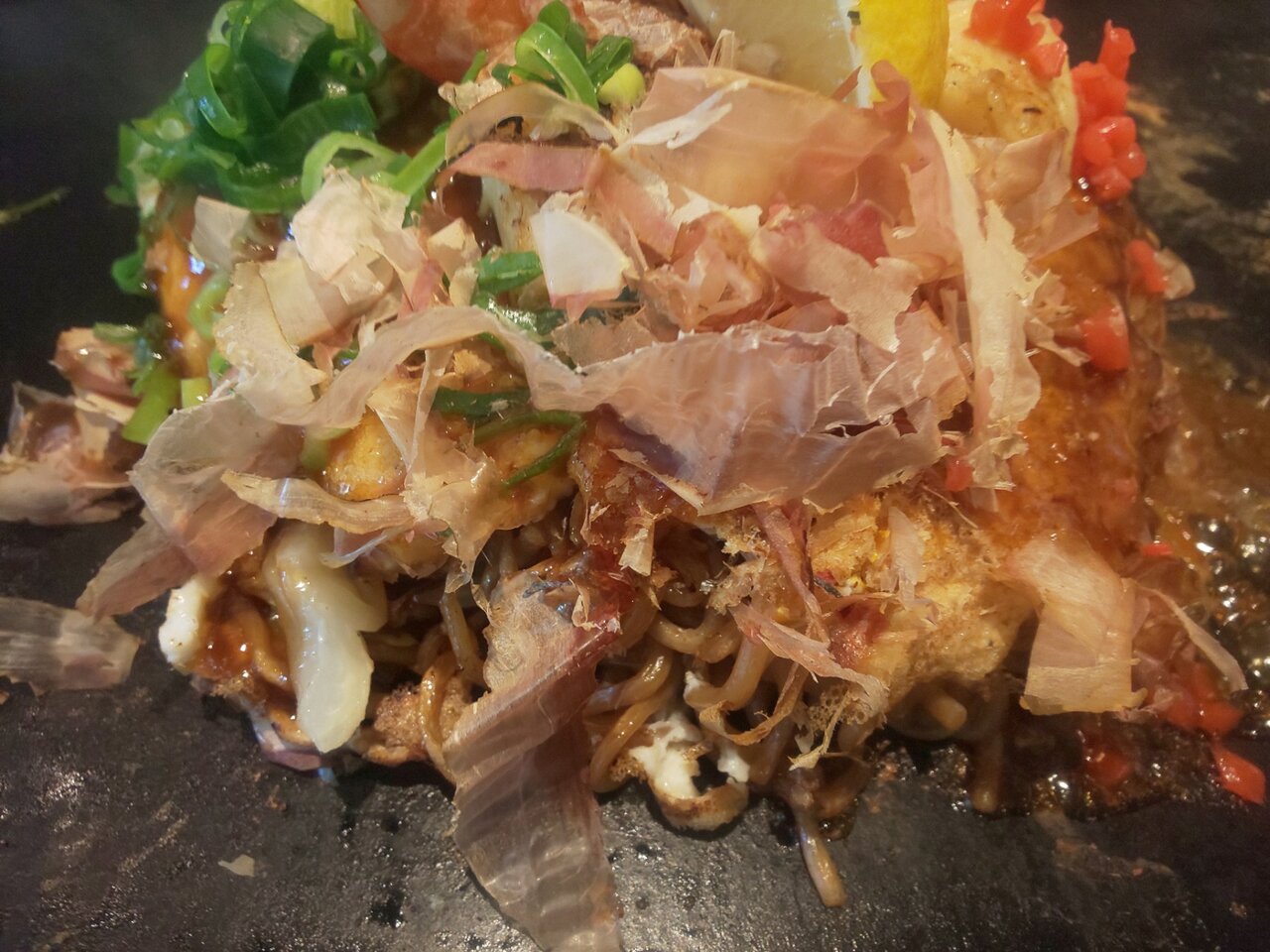 広島焼きっぽく、焼きそばの上に、お好み焼を載せちゃいました✨🤭👍