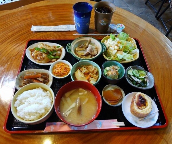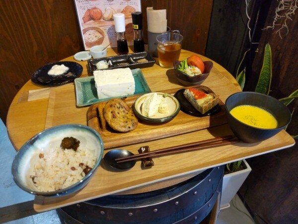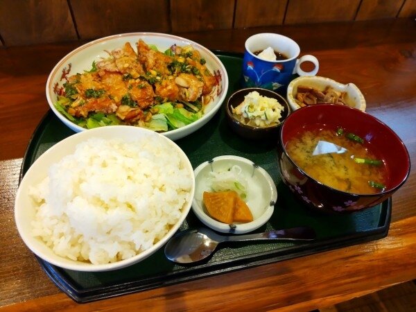 笑顔溢れる古民家カフェのちょこちょこ盛り小鉢群と、鶏南蛮タルタルソースとドリンクバーとデザートでした~ヽ(´ー`)ノ