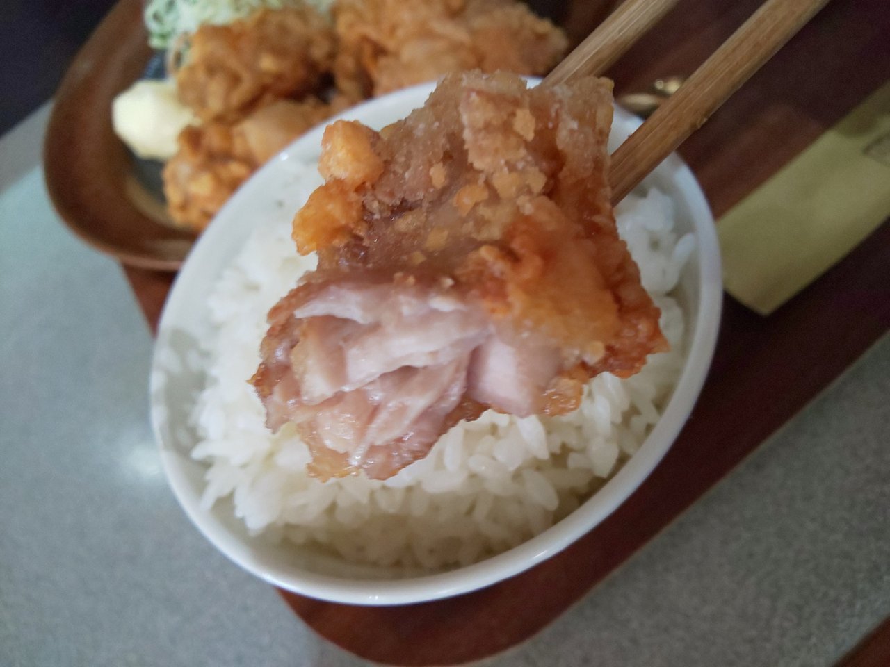甘辛の韓国風的なタレと、たっぷりのタルタルソースで、鶏肉も柔らかくてボリューミーで、ご飯がススムクンでした~ヽ(´ー`)ノ