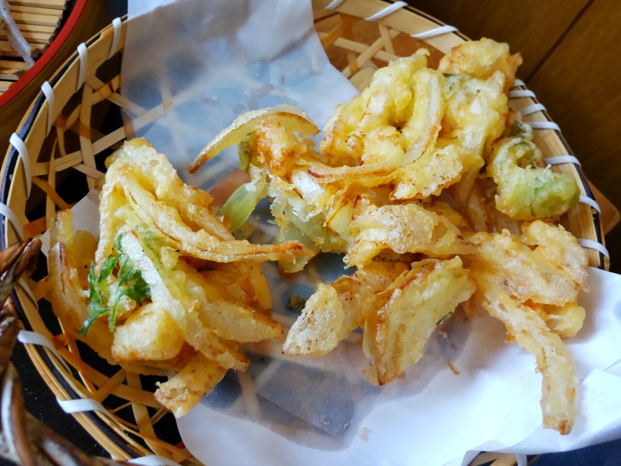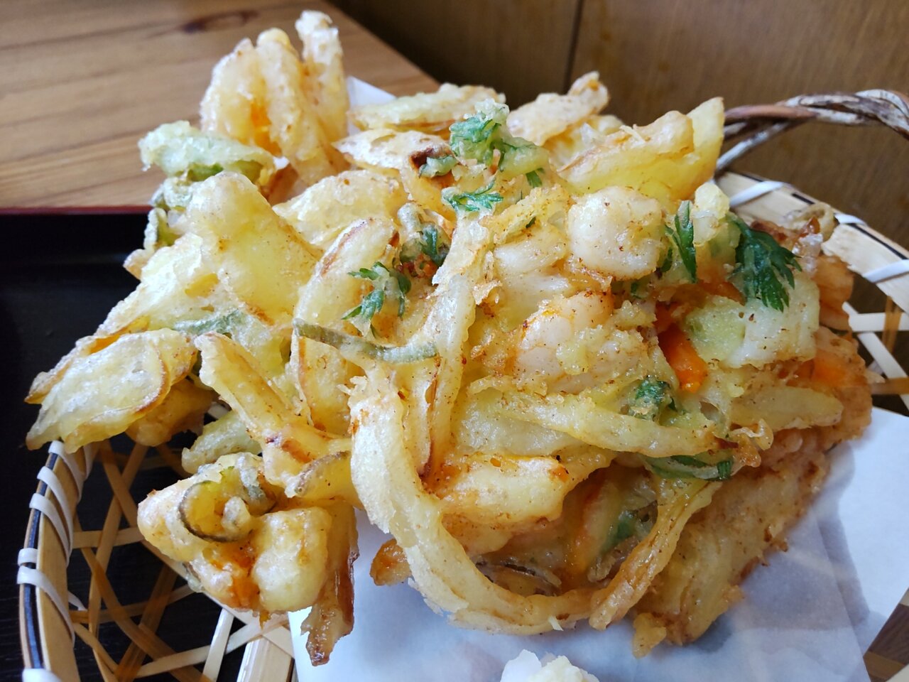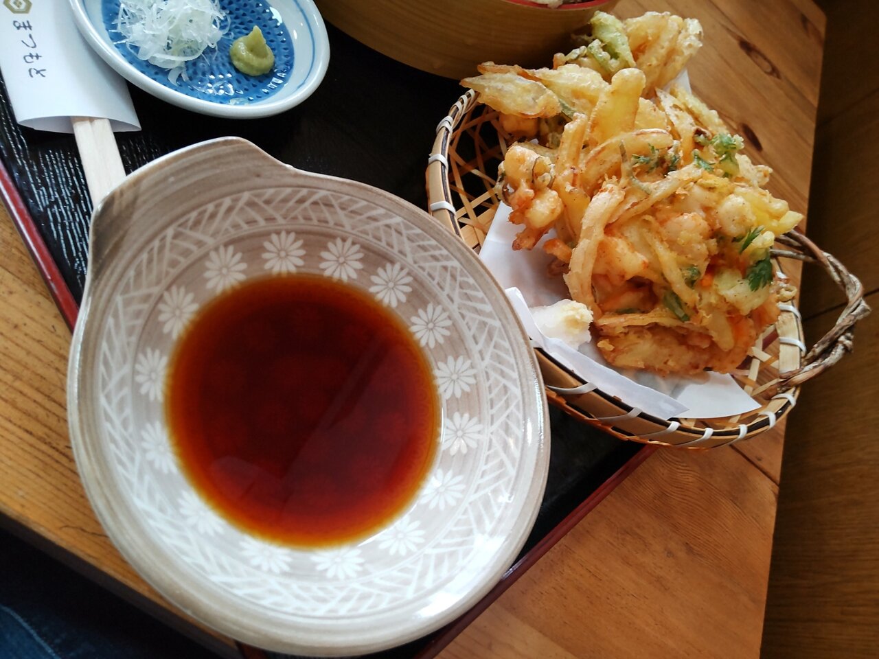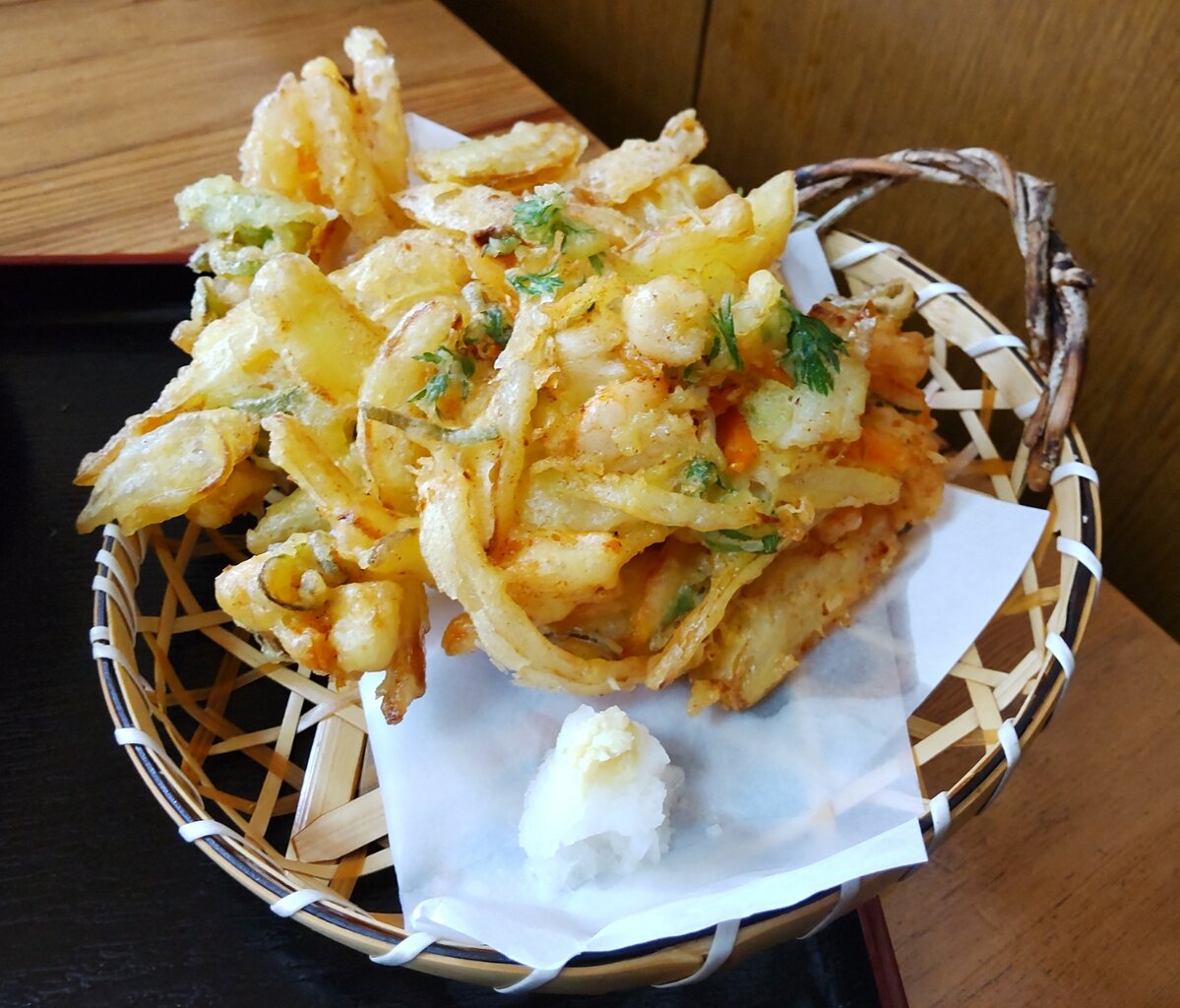 相方のとろろそばに、かき揚げが載って来ました🛬
