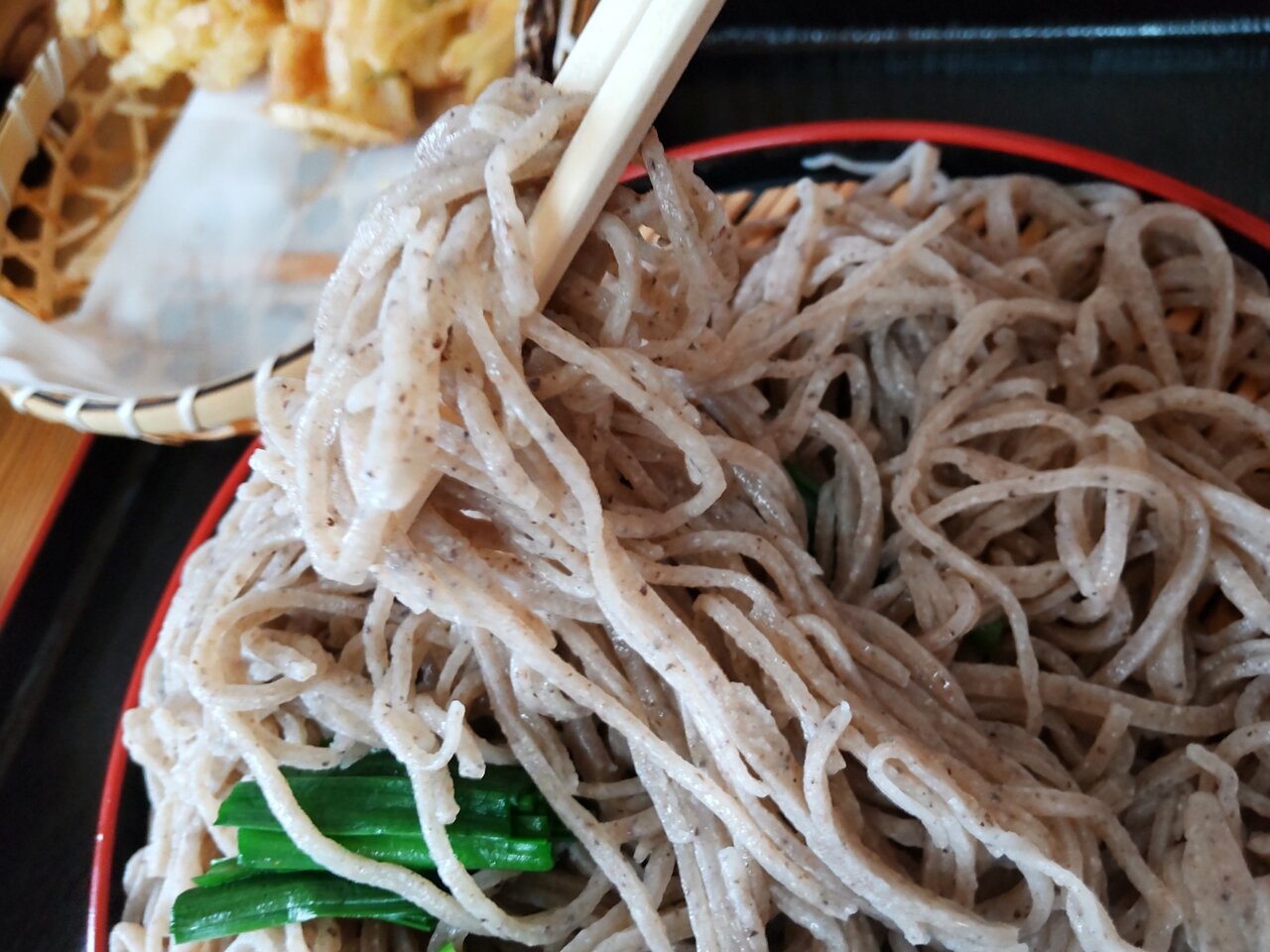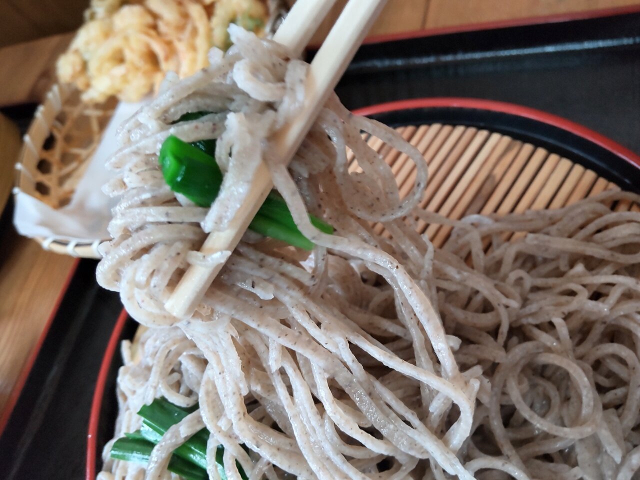 美味しいにらそばと、かき揚げを頂けました✨😋🥢💕