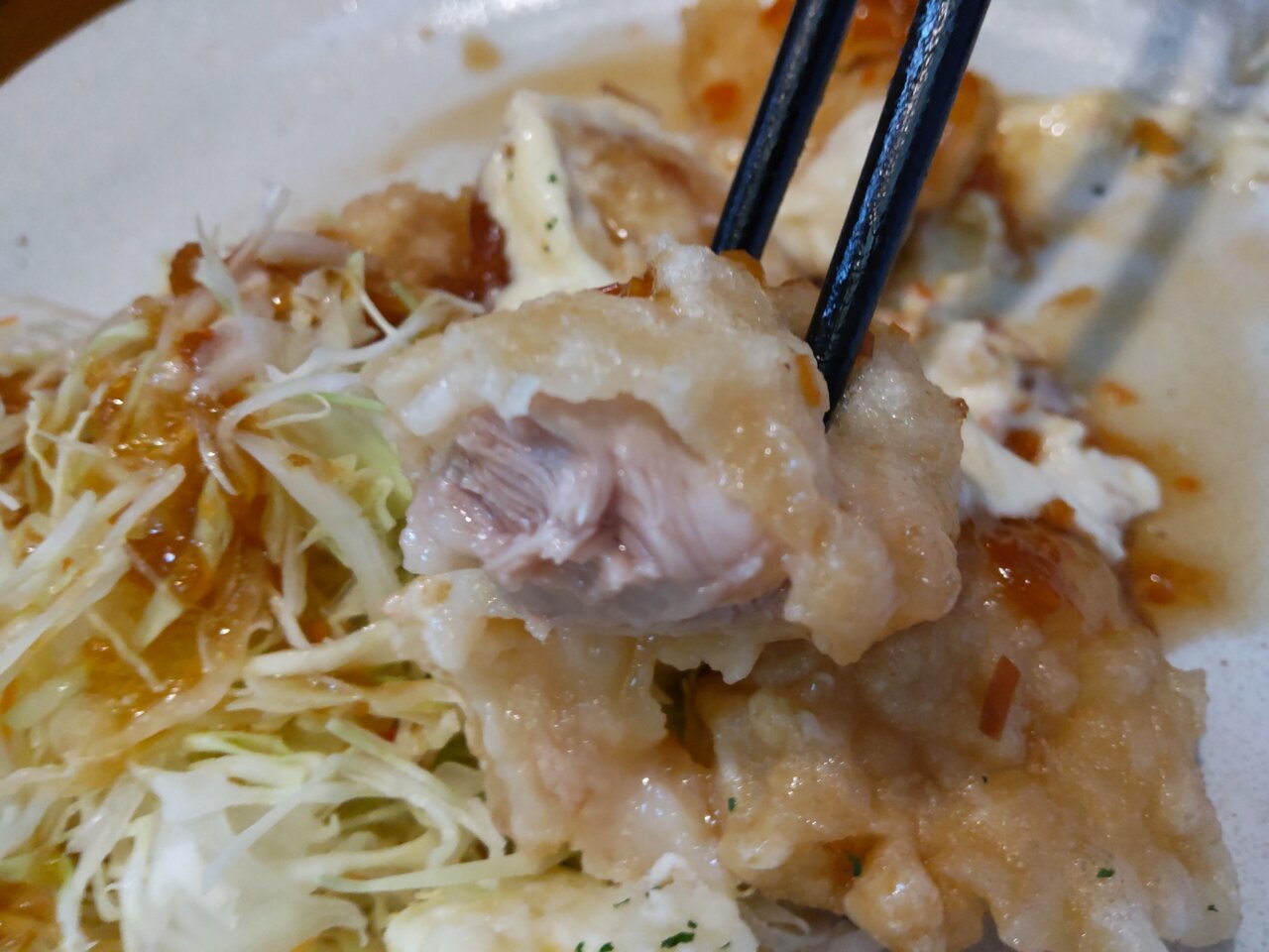 酸っぱ甘いタレで、柔らかいチキンと、相性抜群👍