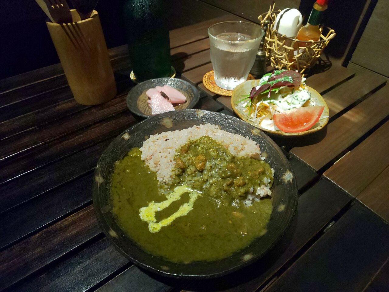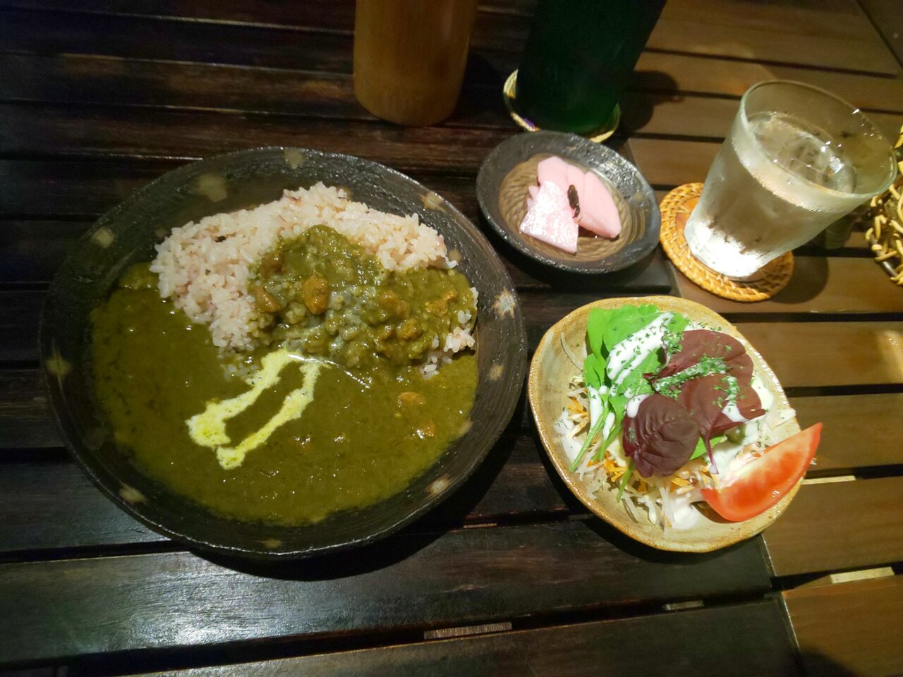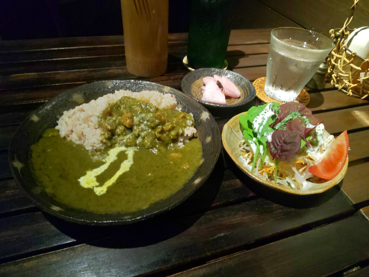 チキンカレーライスセット サラダ、お好きなドリンク1種類 880円 ライス大盛り 110円 合計 990円