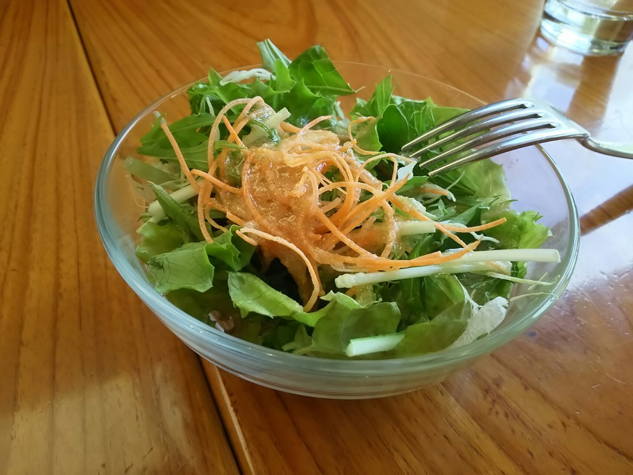 えっ❗サラダ🥗と、スープと、福神漬けが来ました🏍️💨