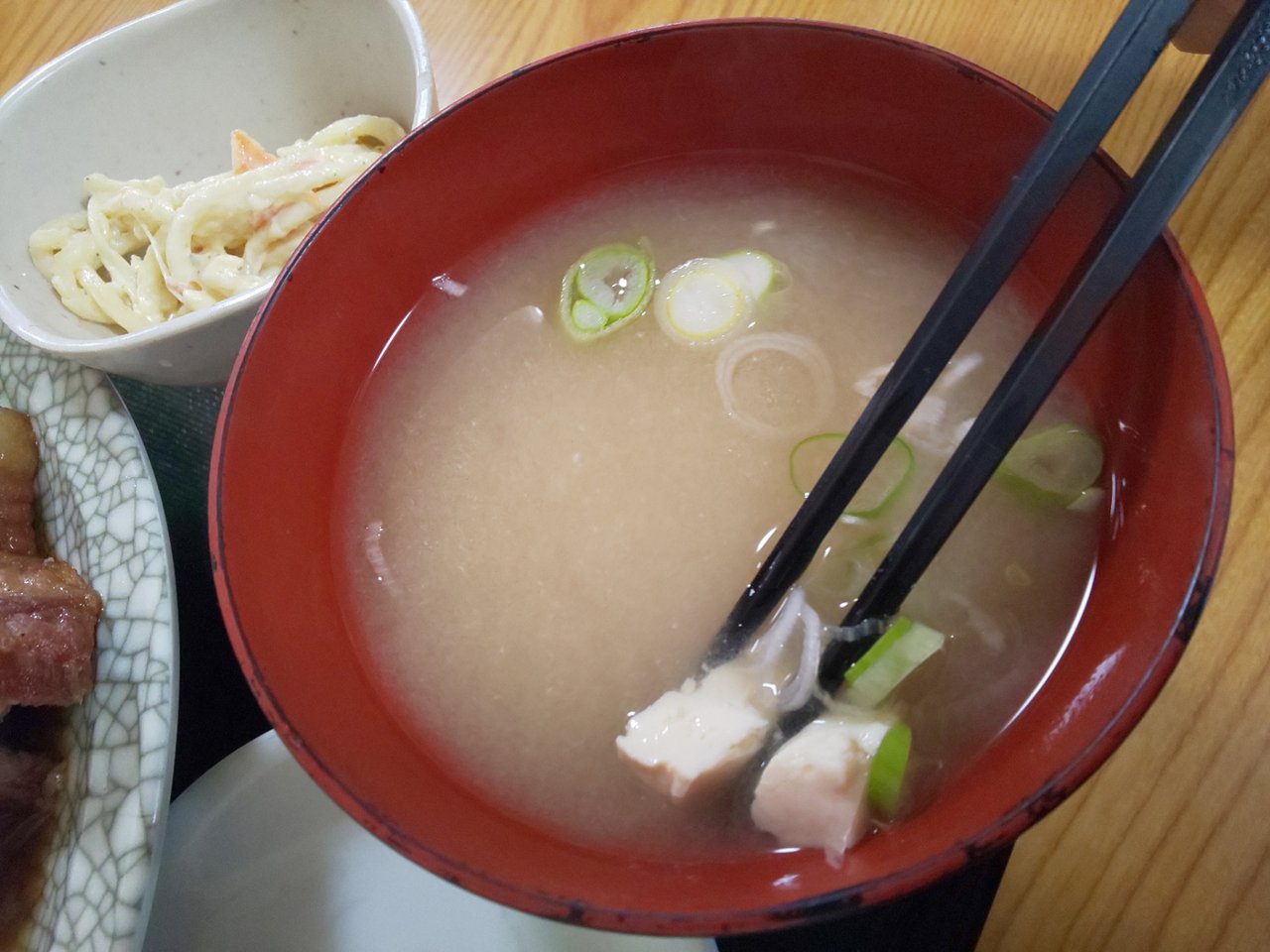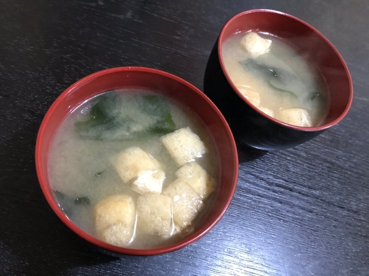 お豆腐、ワカメ、三つ葉のお味噌汁さん☘️