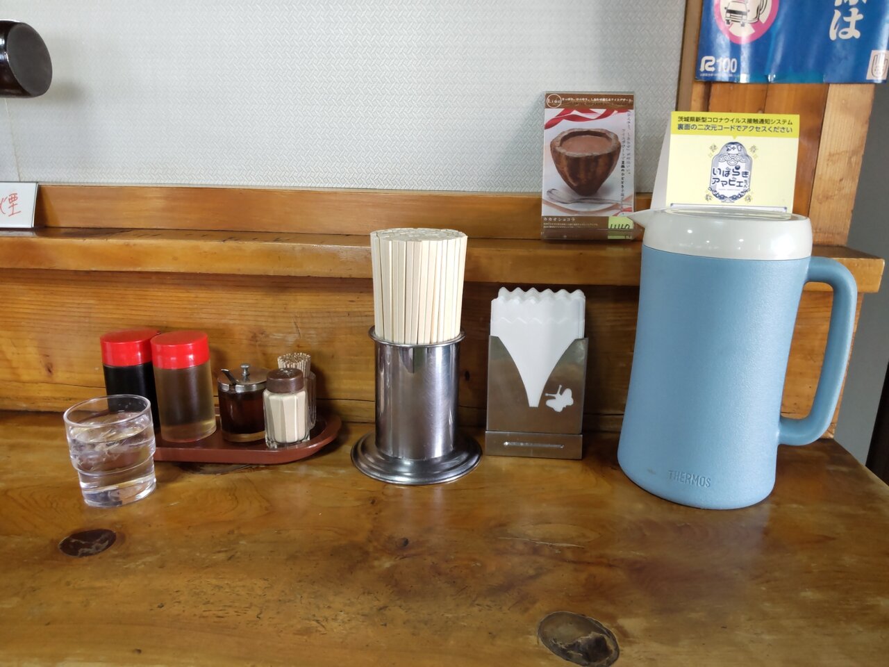 お水と、お箸と、おしぼりが来ました🛬