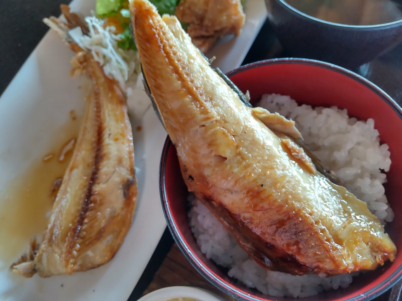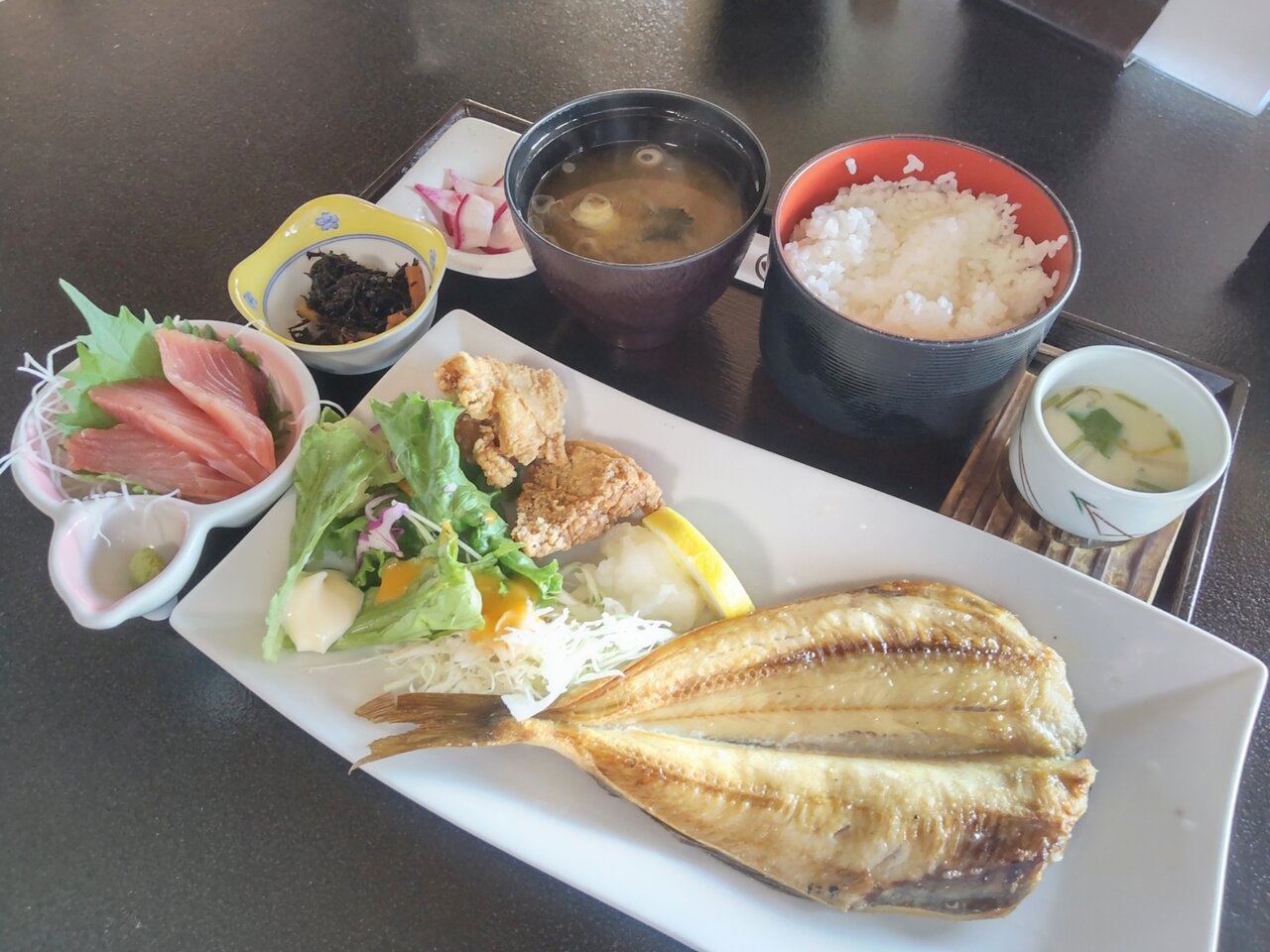 とても美味しい、お刺身、ホッケ、唐揚げのセットでした✨😋🥢💕