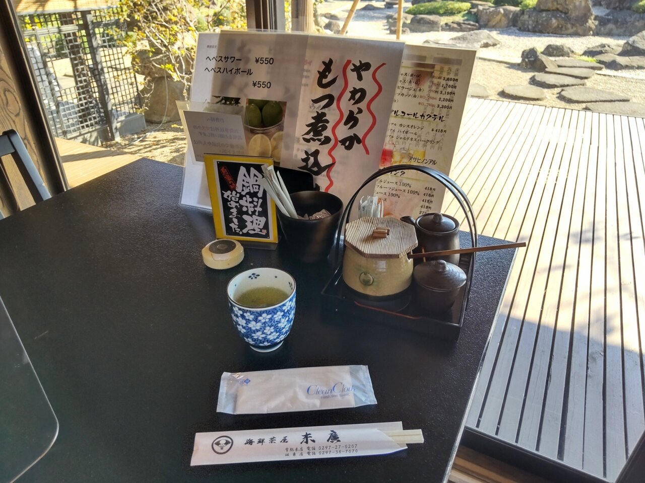 お茶と、おしぼりと、お箸が来ました🎵