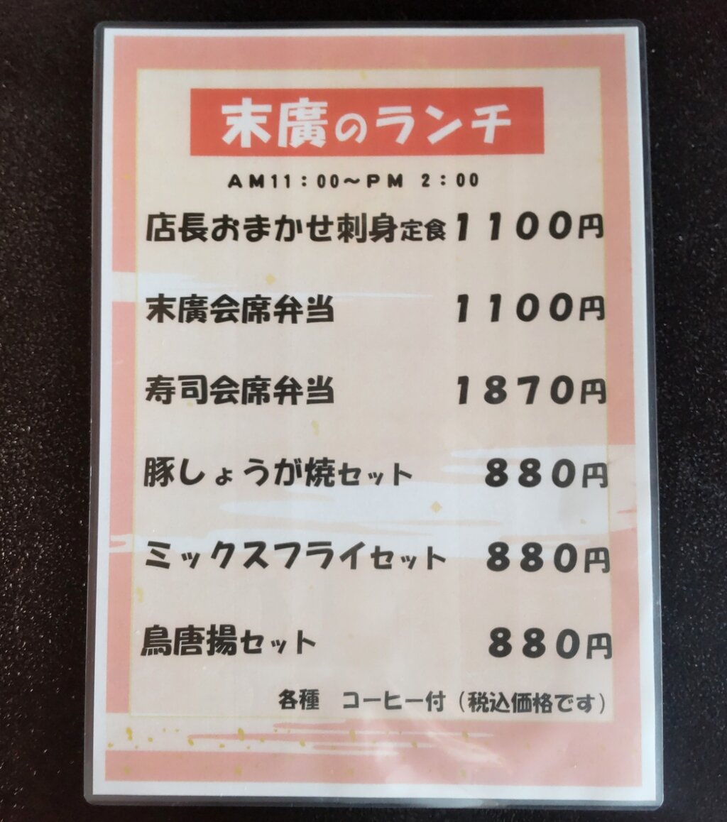 常総市の、海鮮茶屋末廣さんの姉妹店📋️