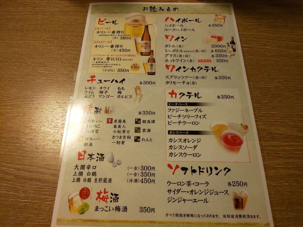 ビール🍺おかわり無しで、このお値段です