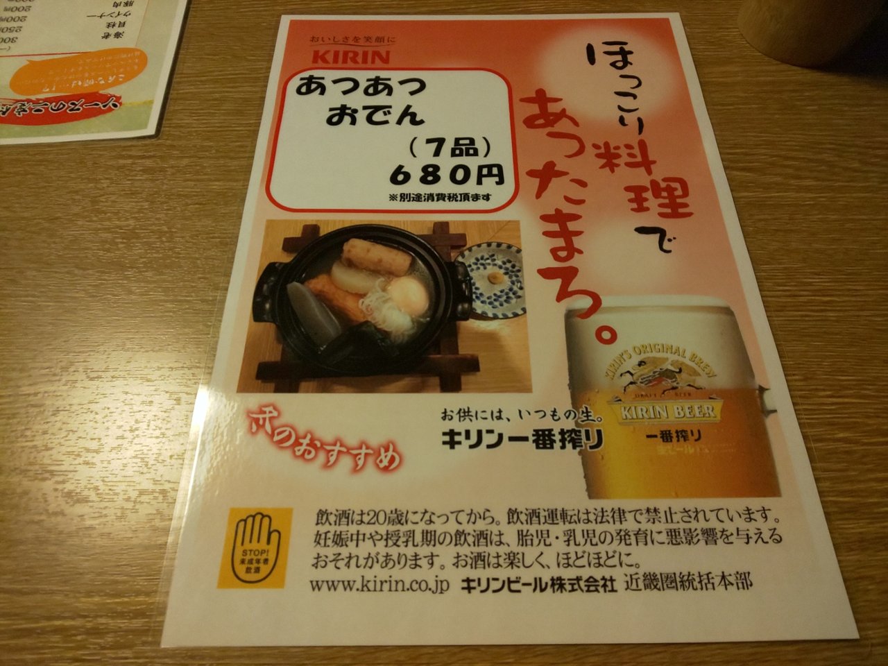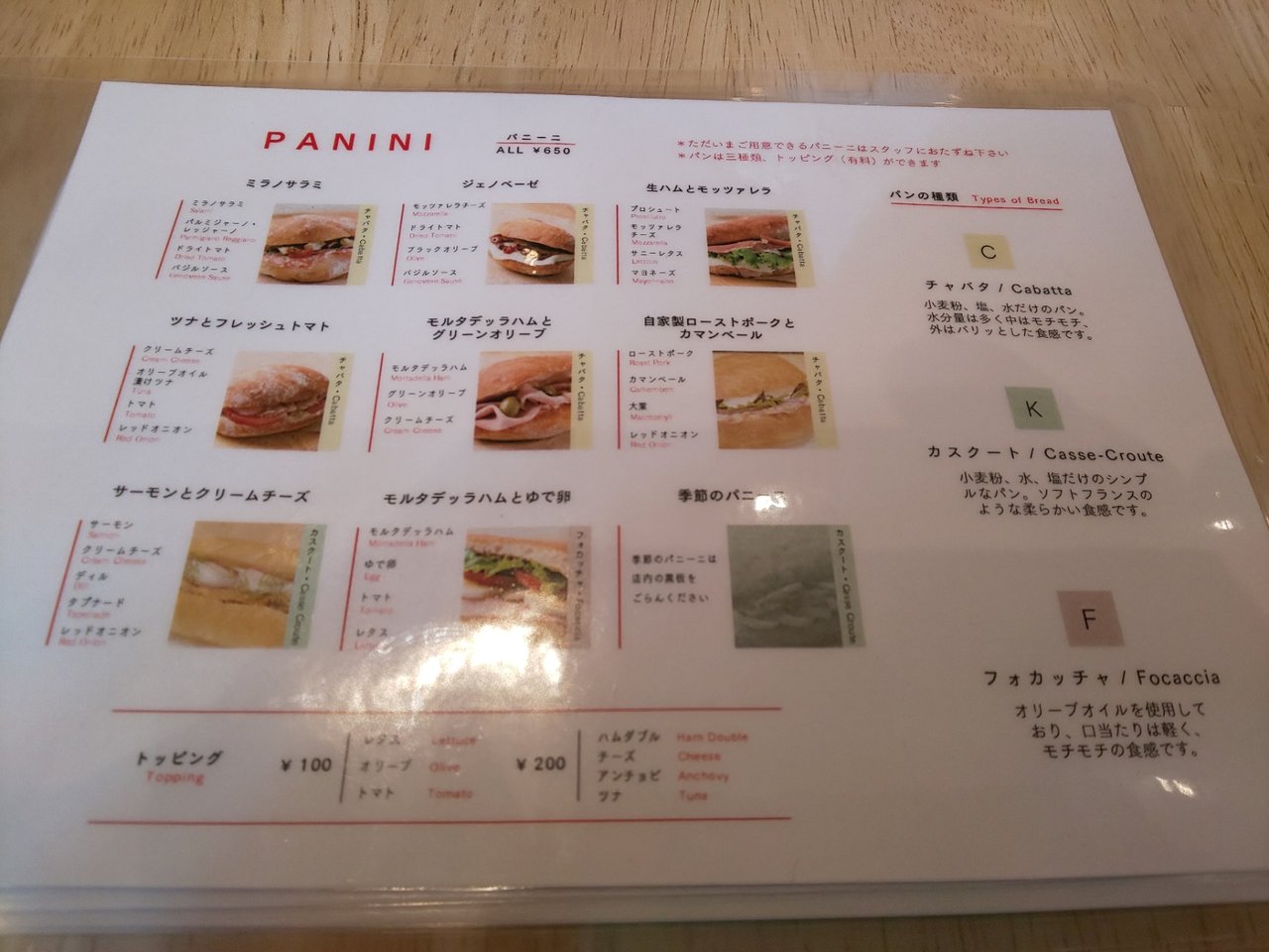 👆️これが、外でも渡されたメニュー🍀です