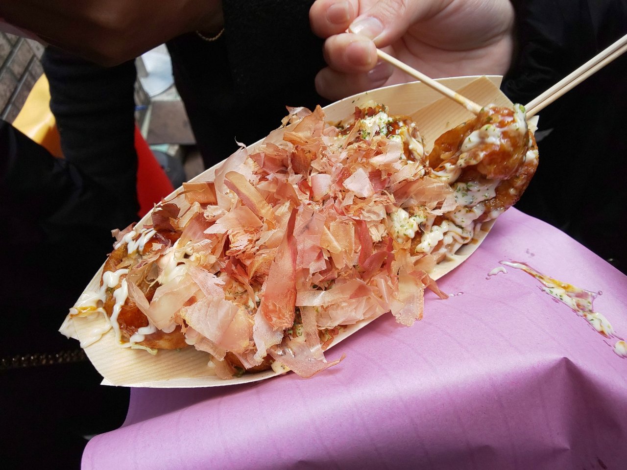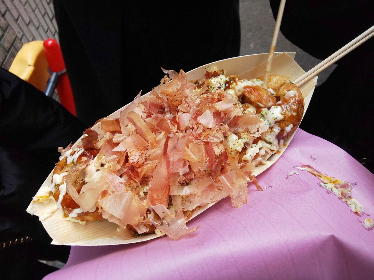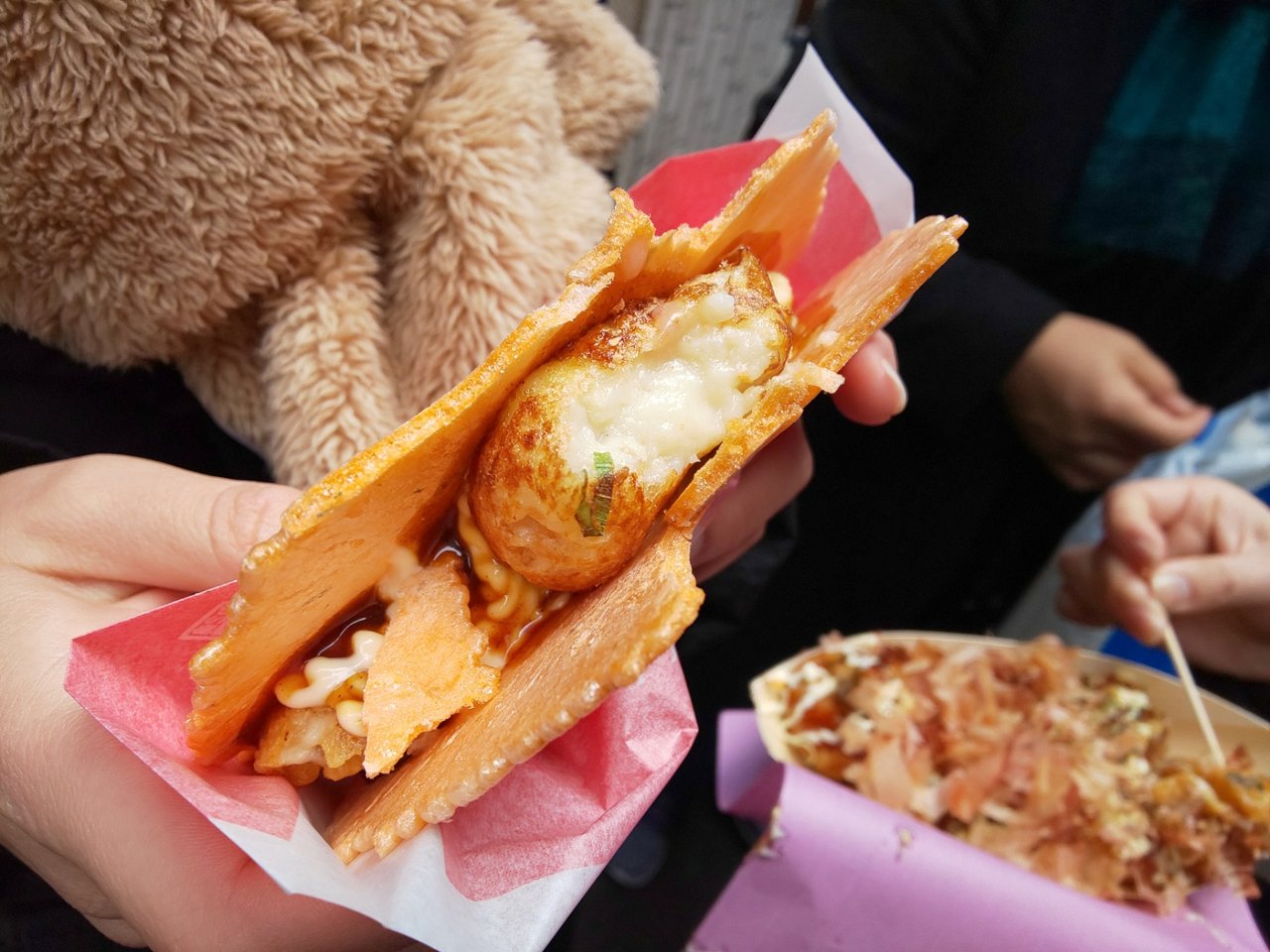 大阪っぽく、お好み焼きのヘラで取り、フウフウして食べてみた😄