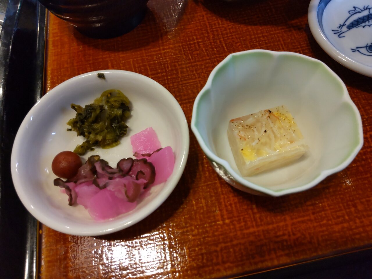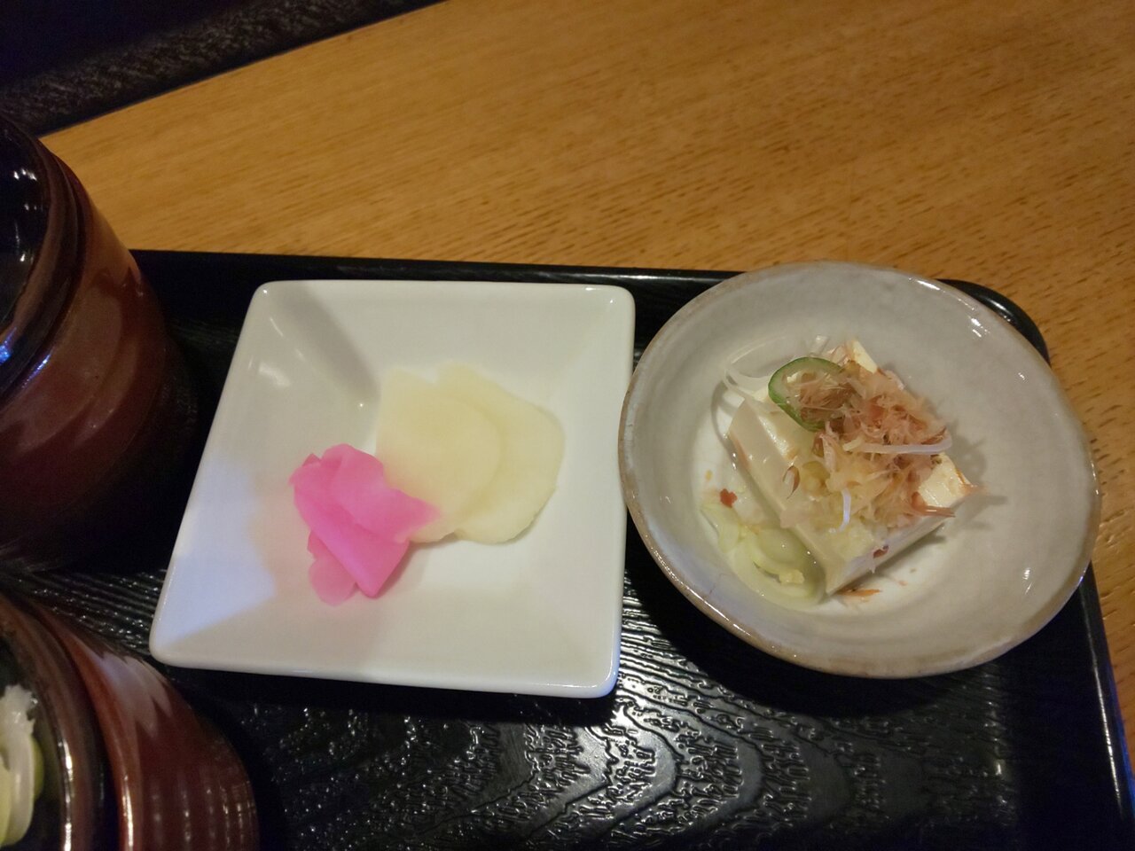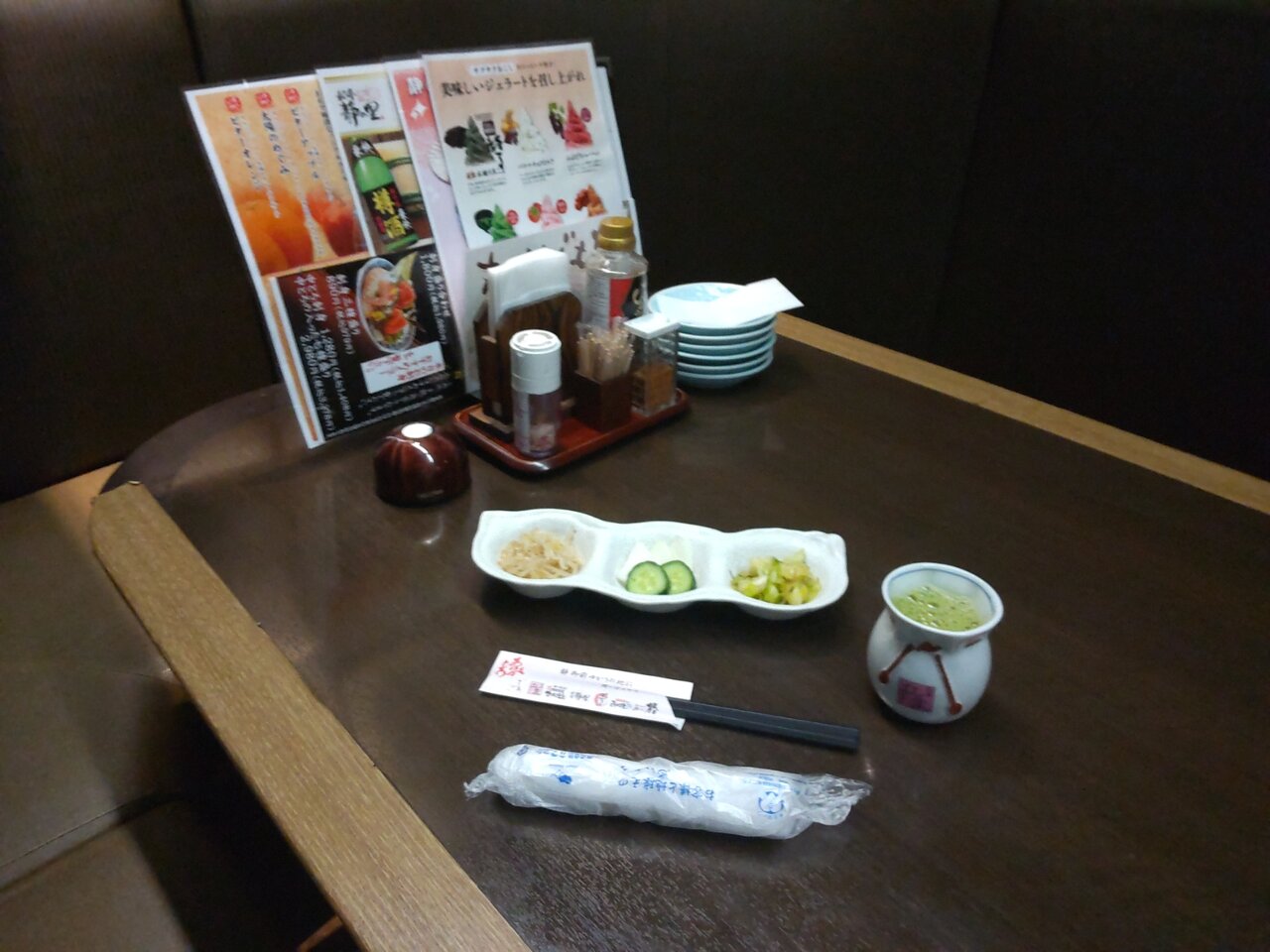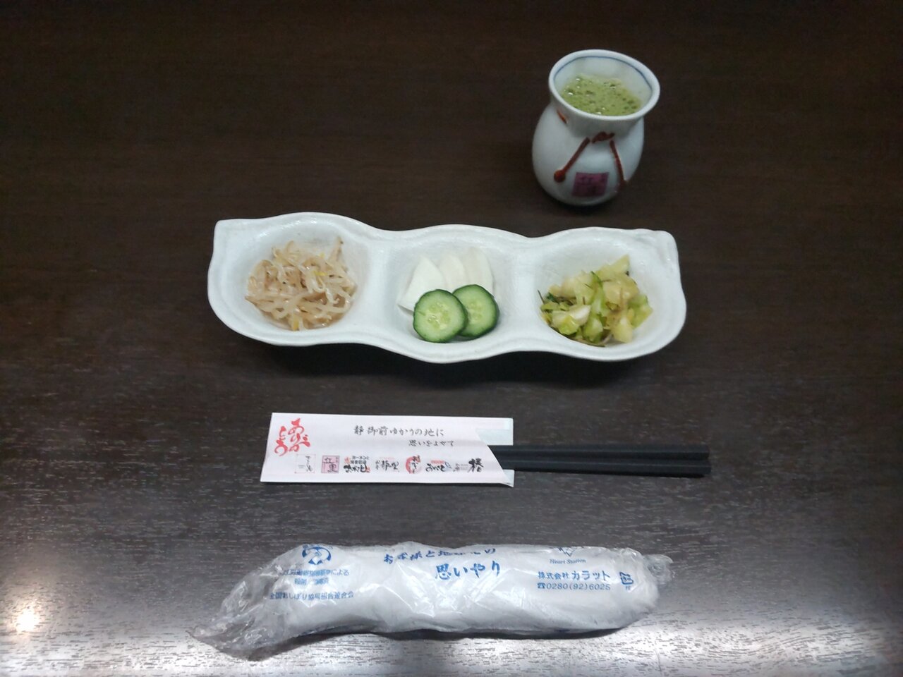 お茶と、おしぼり、お箸、香の物が来ました🍵😌✨