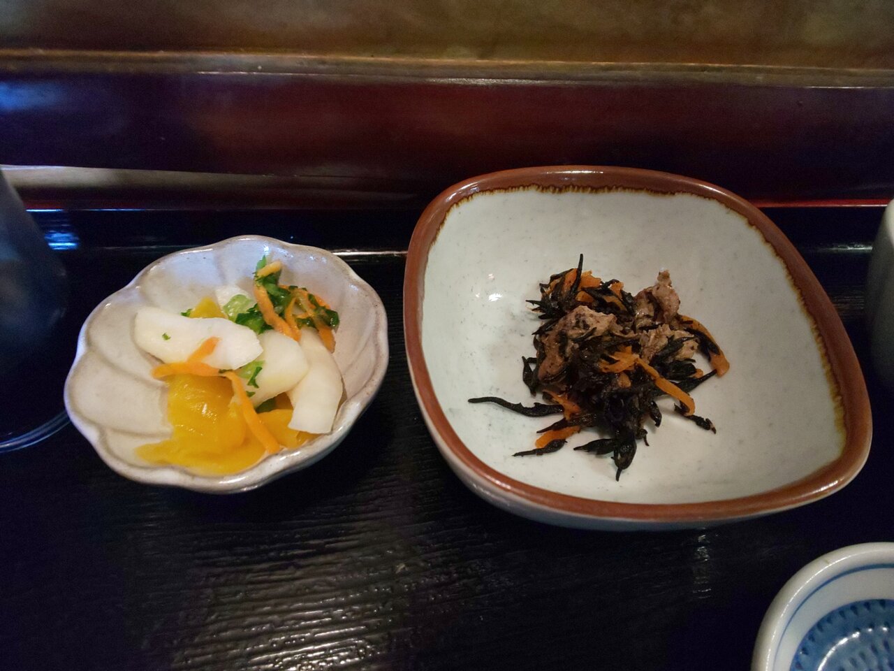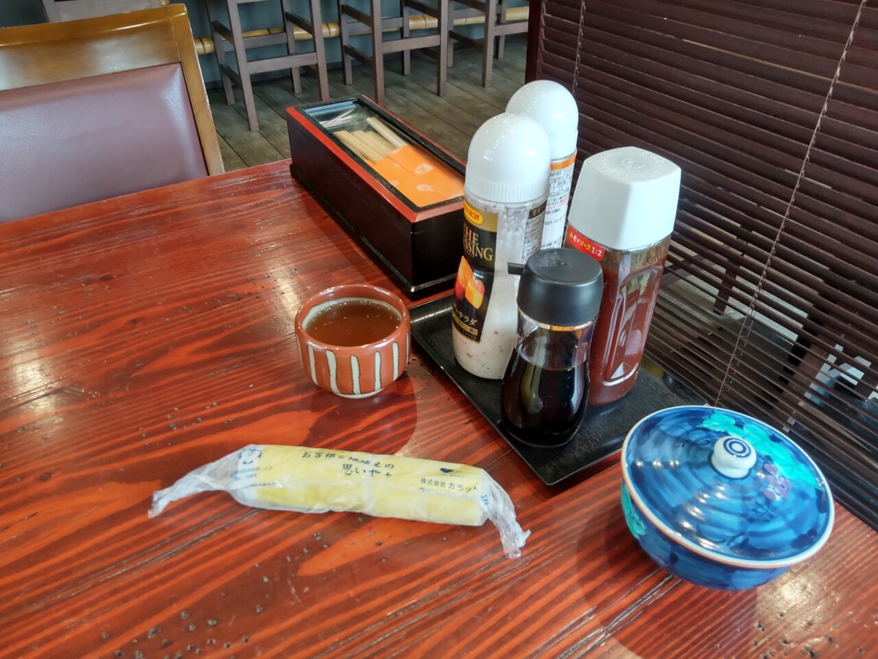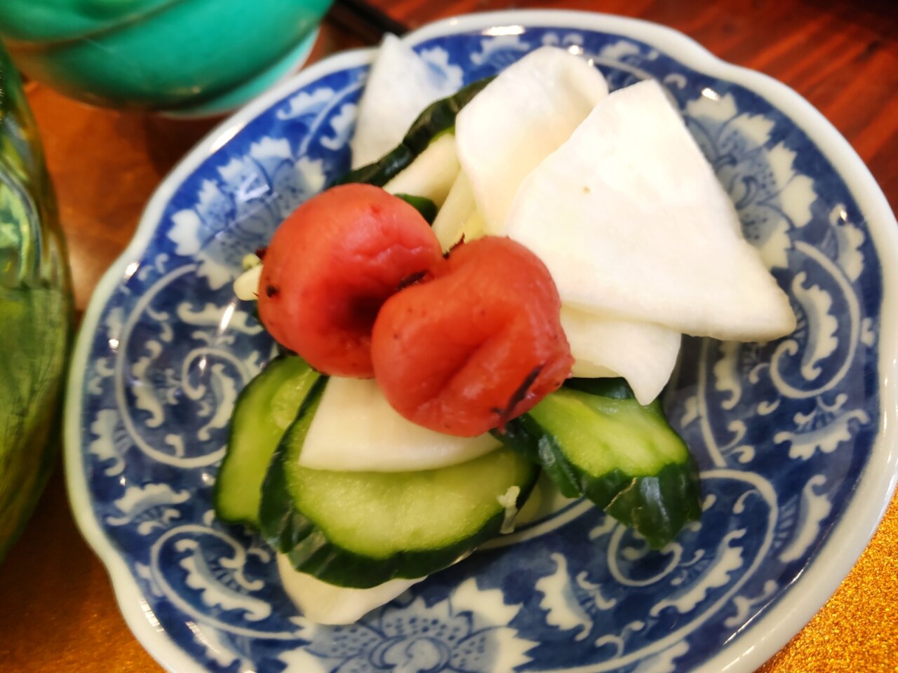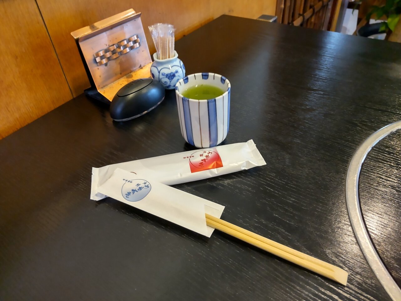 お茶と、おしぼり、お箸、香の物が来ました🍵😌✨
