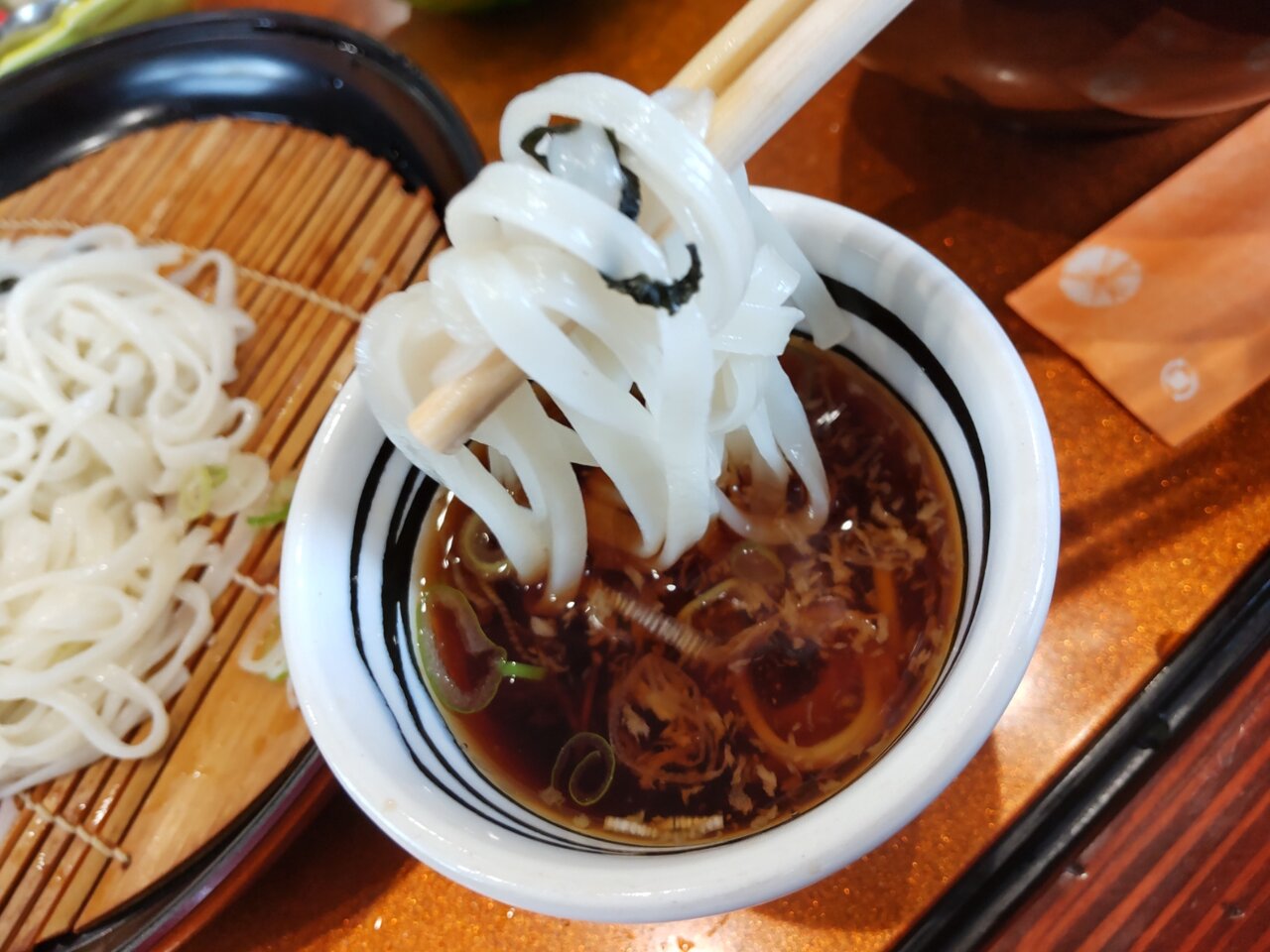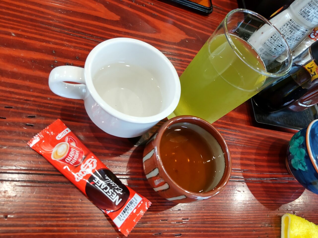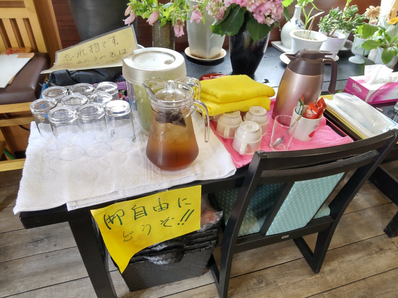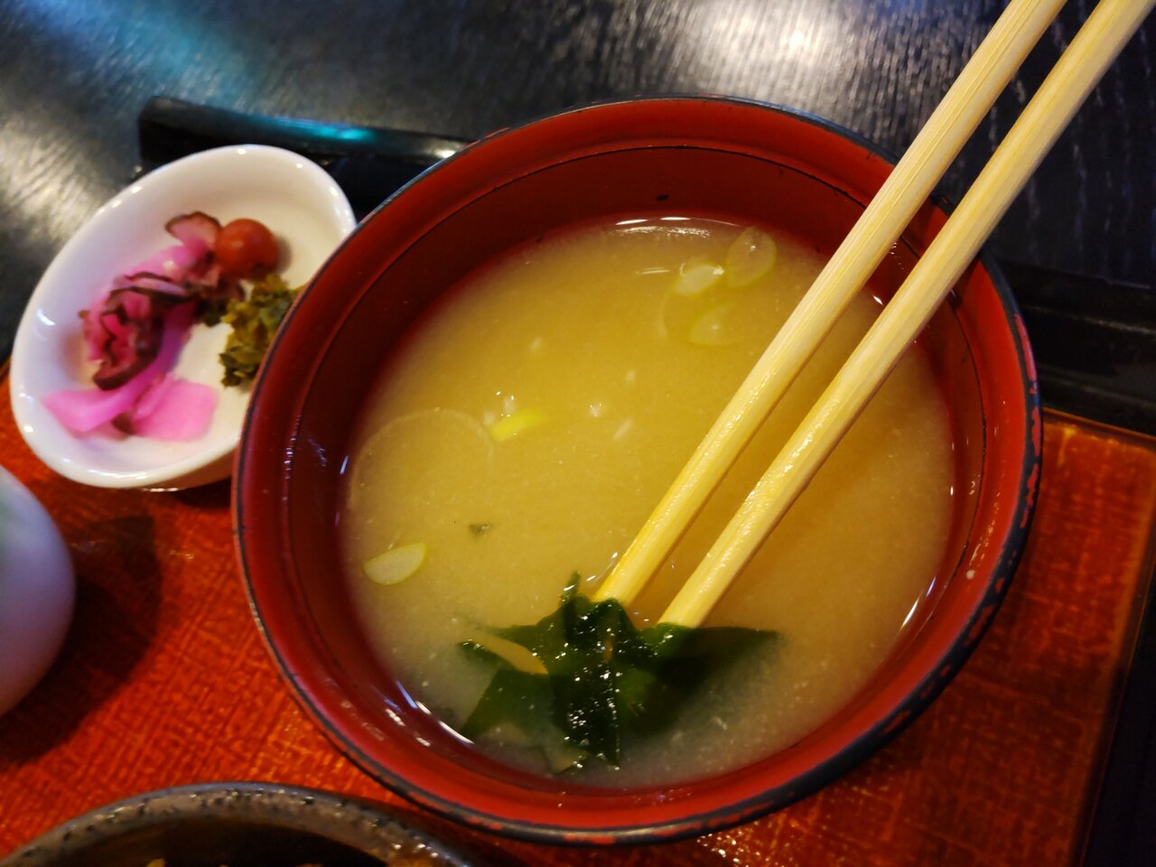 お茶と、おしぼり、お箸、香の物が来ました🍵😌✨