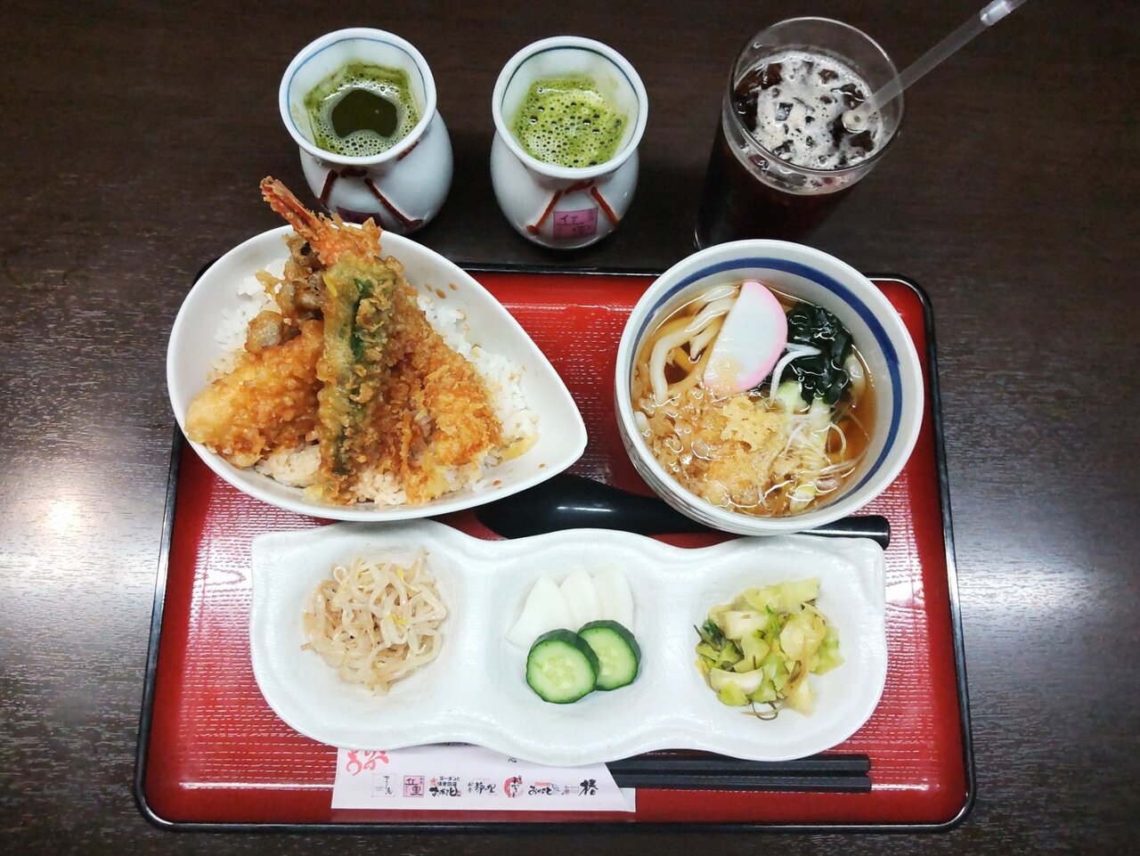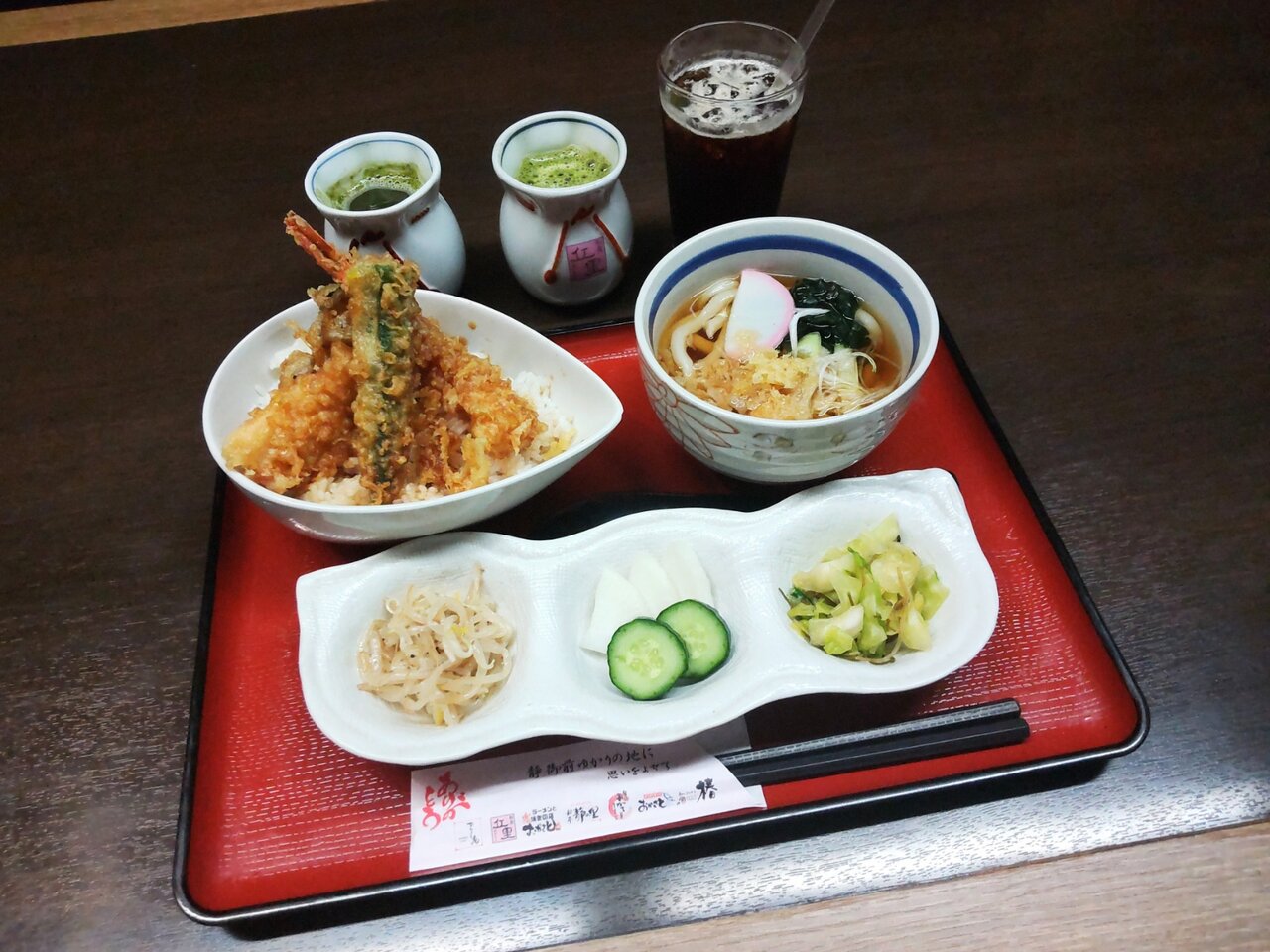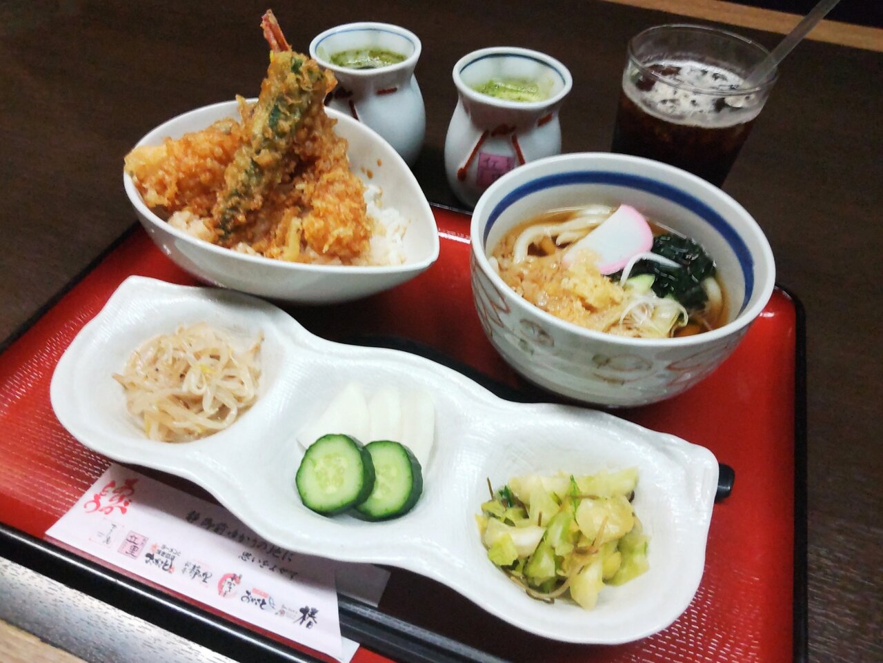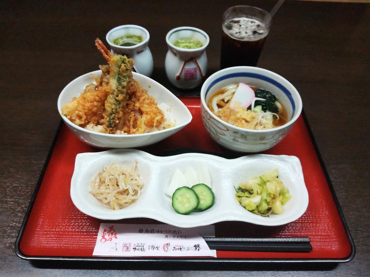 日替り膳は、天丼 温うどん ドリンク一杯付