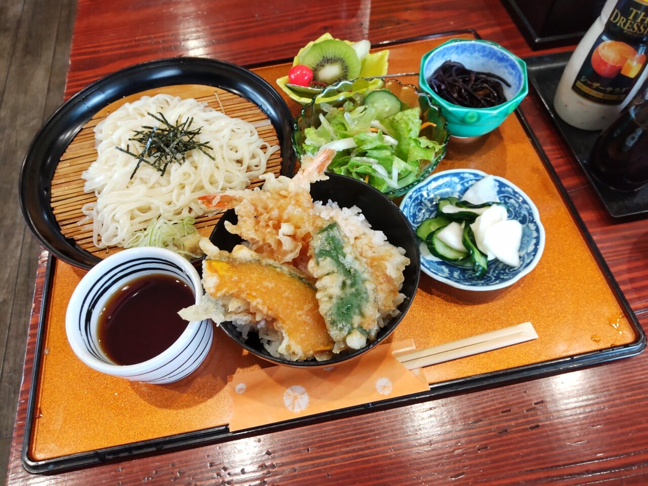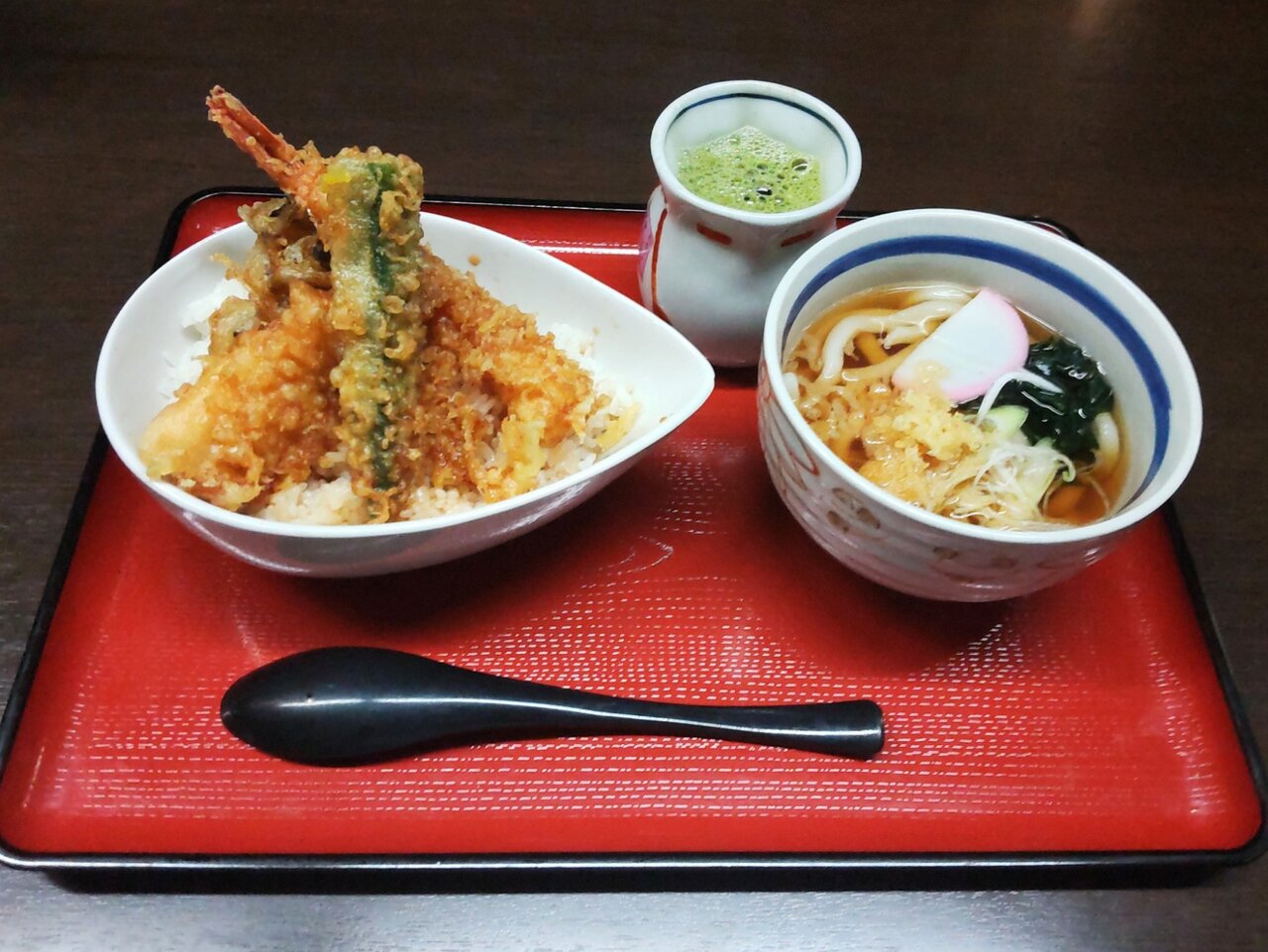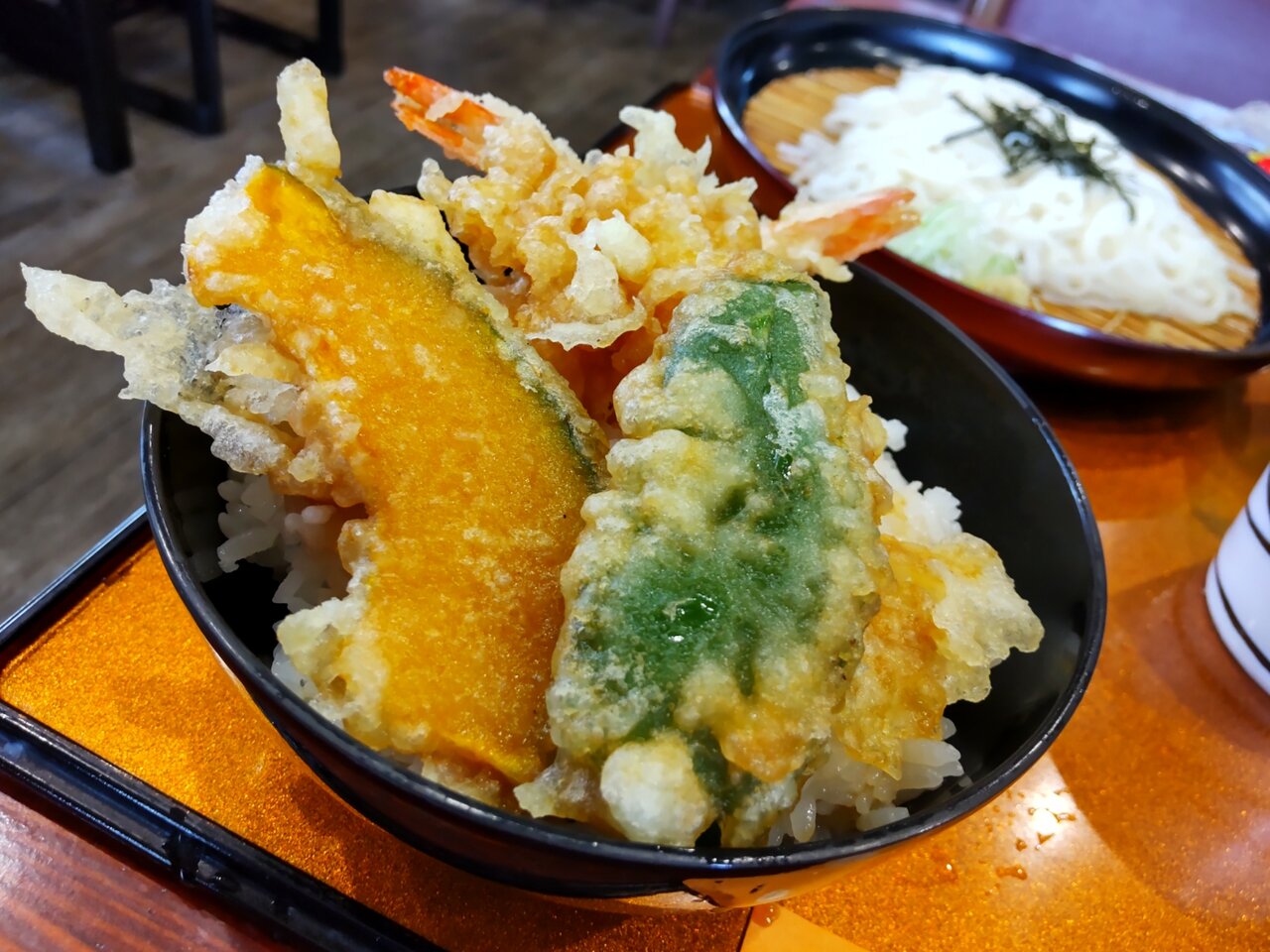 とても美味しい天丼と、たぬきうどんの日替わりセットでした✨😋🥢💕