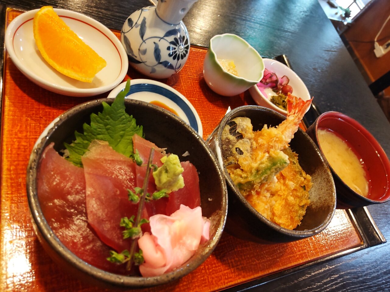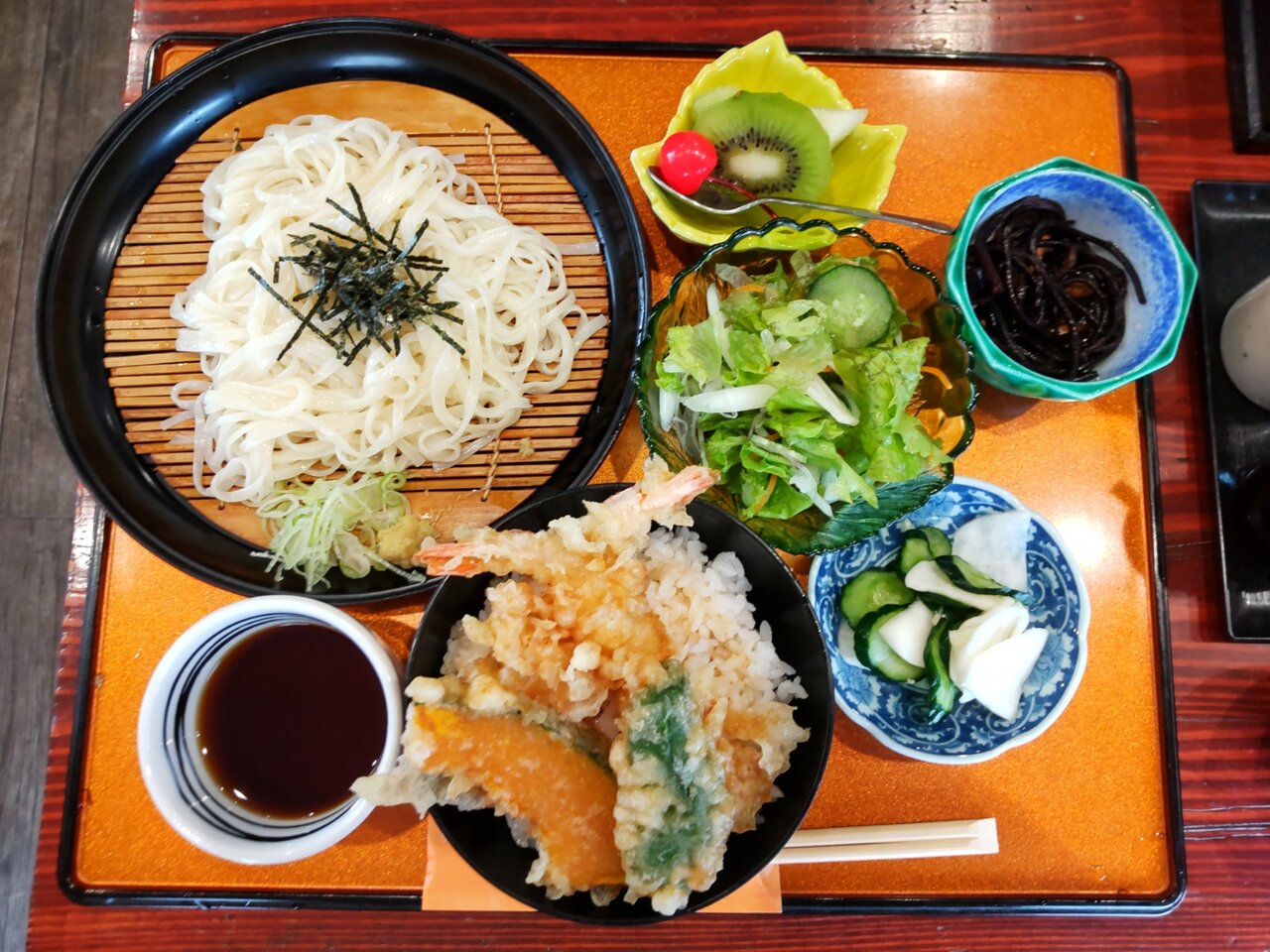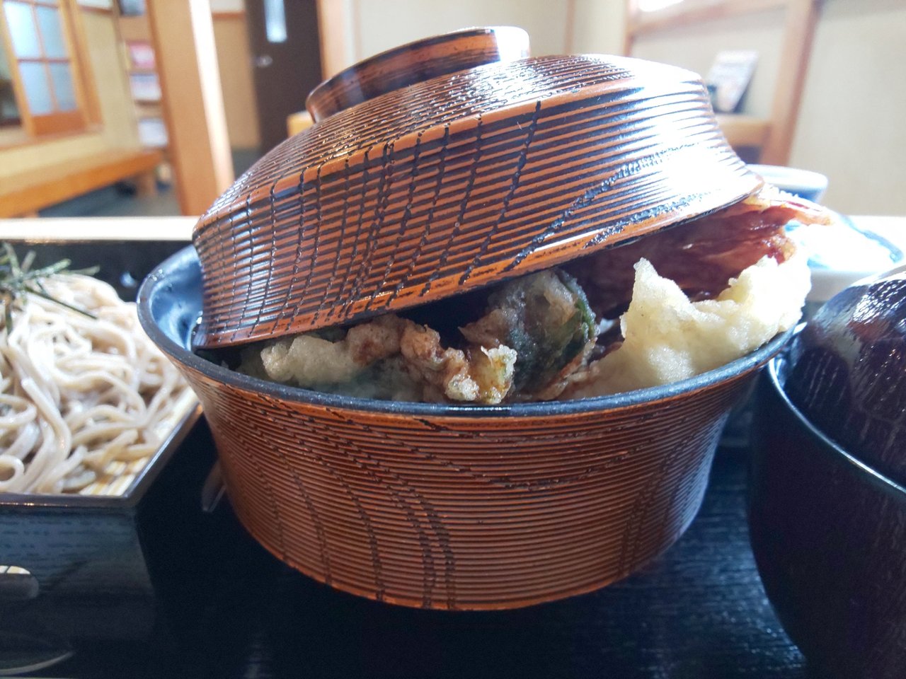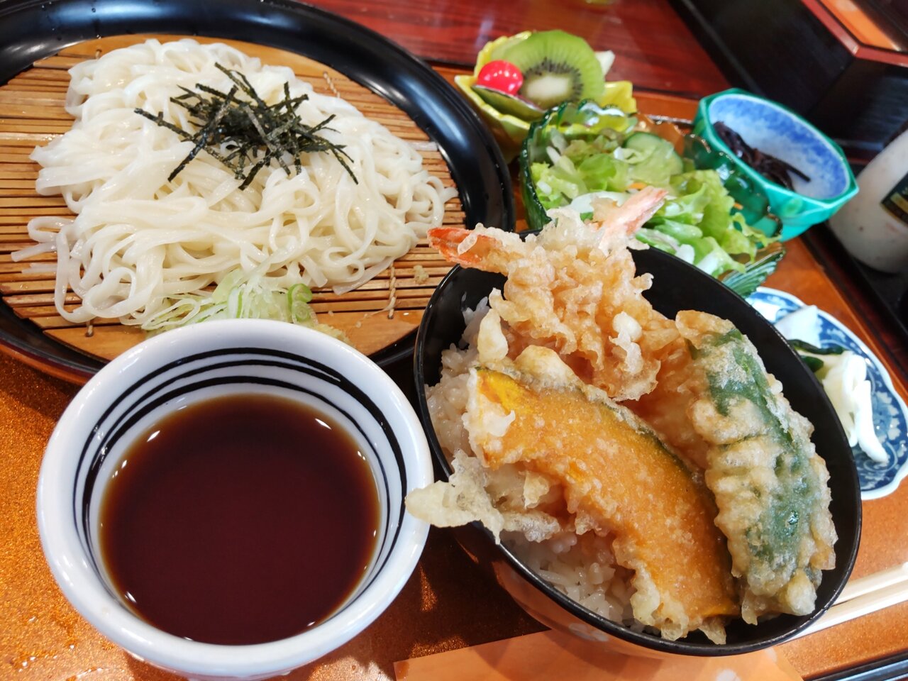 とても美味しい天丼と、たぬきうどんの日替わりセットでした✨😋🥢💕