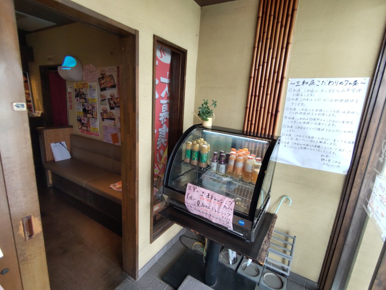 ドリンクバー横を通り抜け、案内されます👍