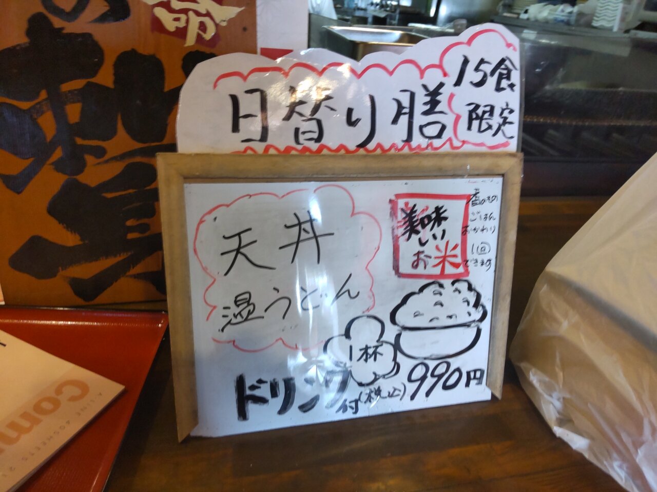 日替り膳 天丼 温うどん ドリンク一杯付 990円