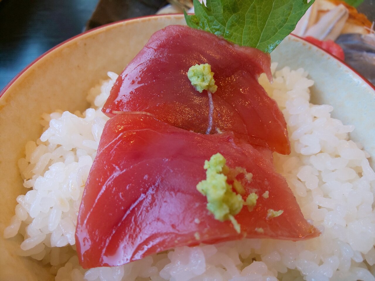 ご飯の上に海苔で、タレも良い塩梅でかかってます~ヽ(´ー`)ノ