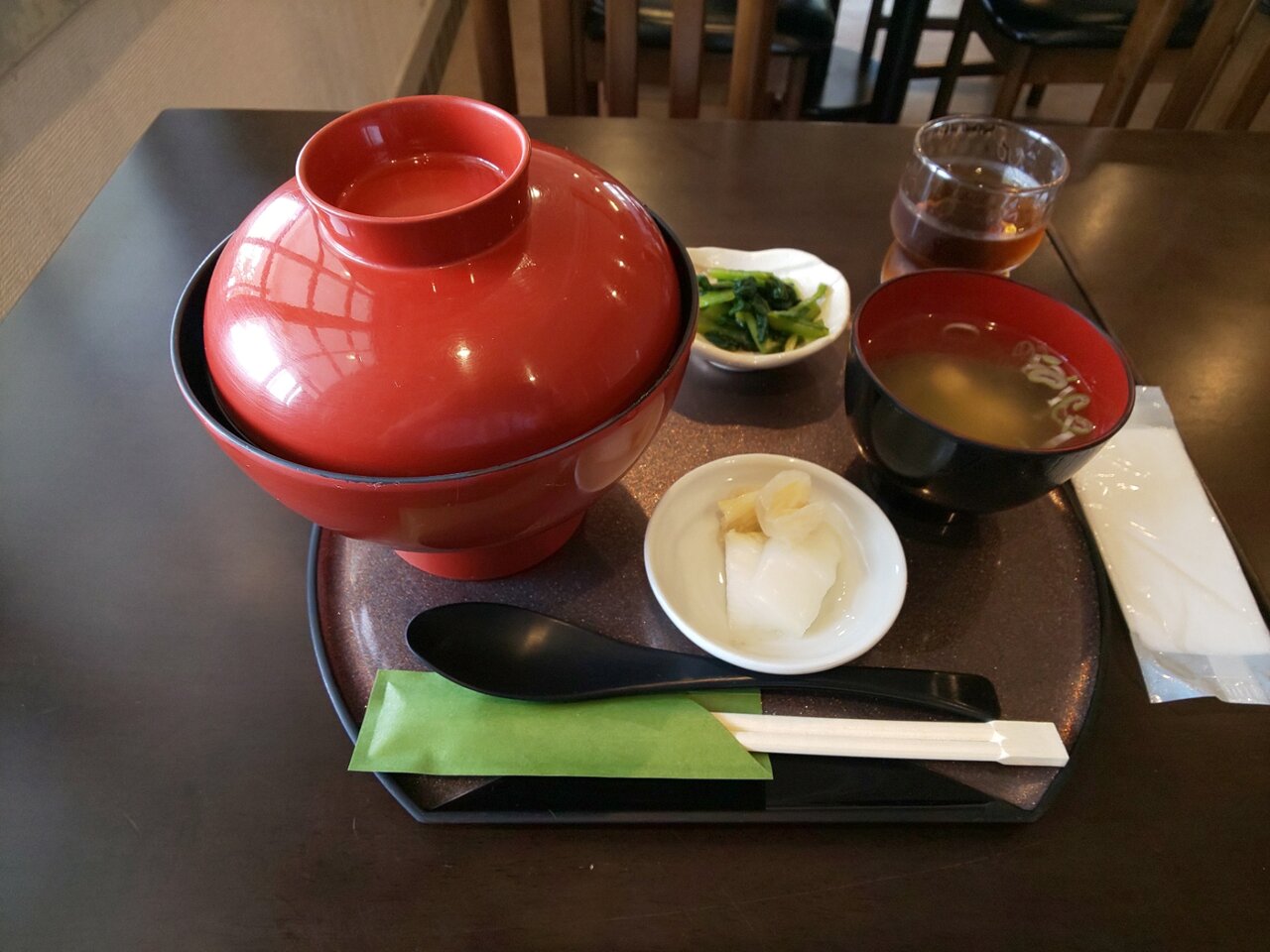 お茶と、おしぼりが来ました🛬🍵😌✨