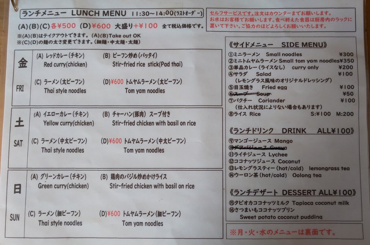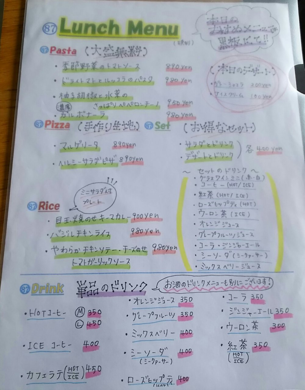 メニュー📋️🍀