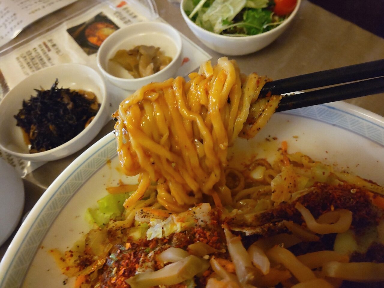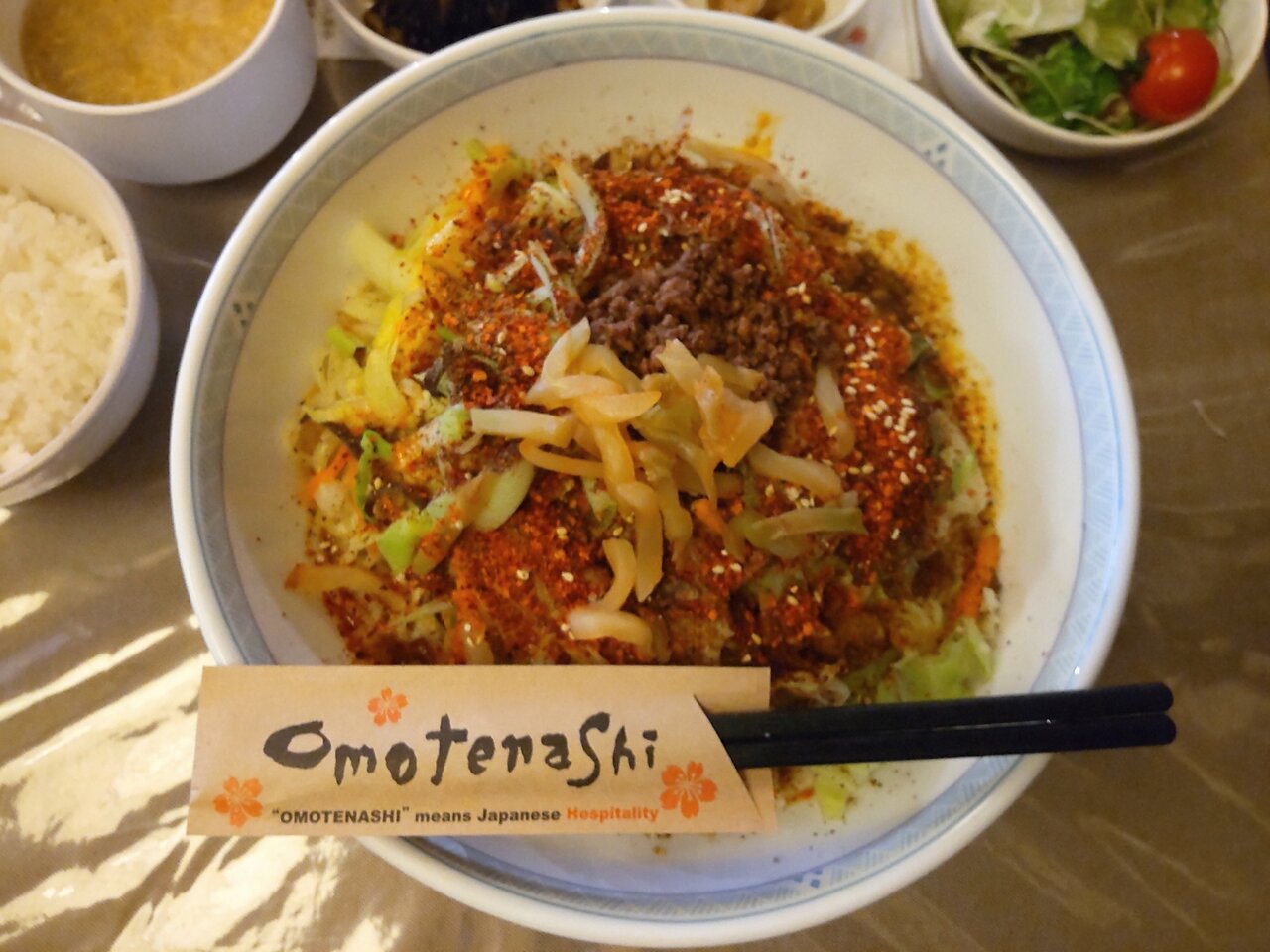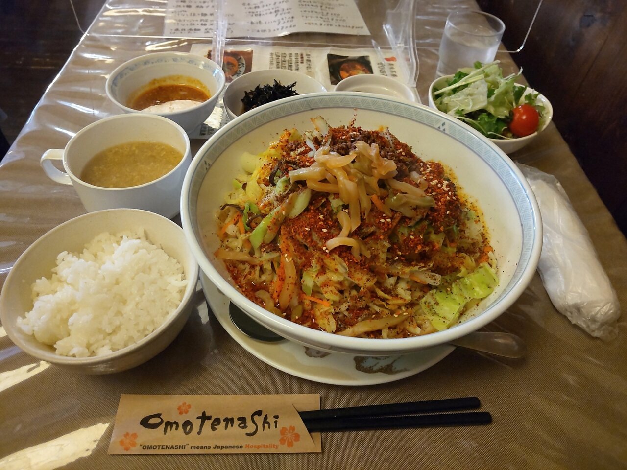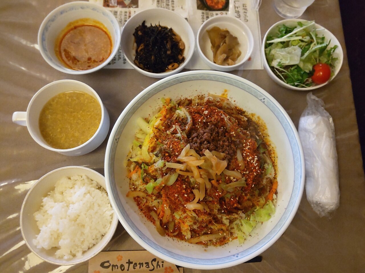 とても美味しい、そして、かなりボリューミーな汁なし担々麺と、ミニサラダセットでした✨😋🍜🍚🥗💕