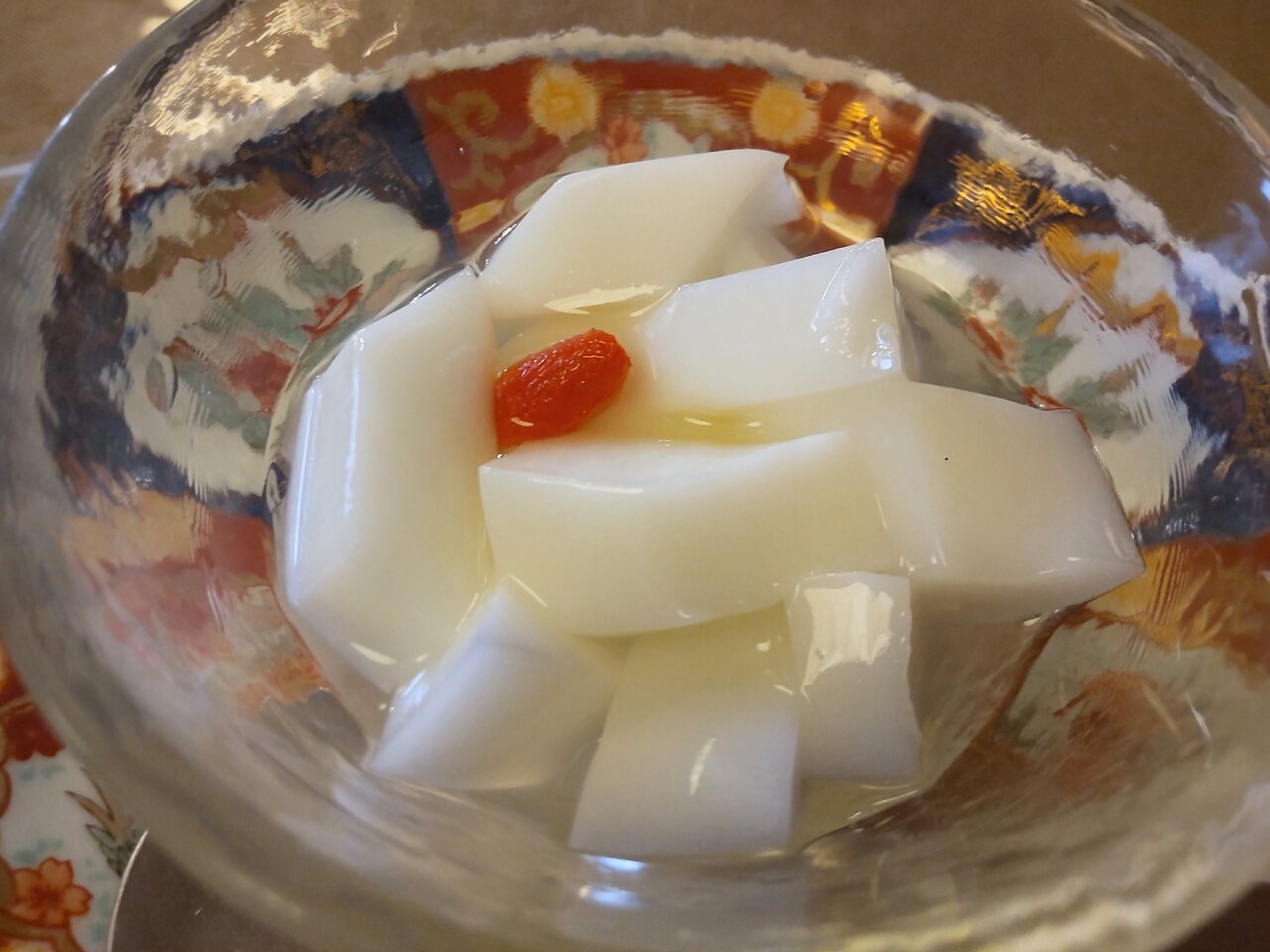 食後に杏仁豆腐さんが来ました🎵