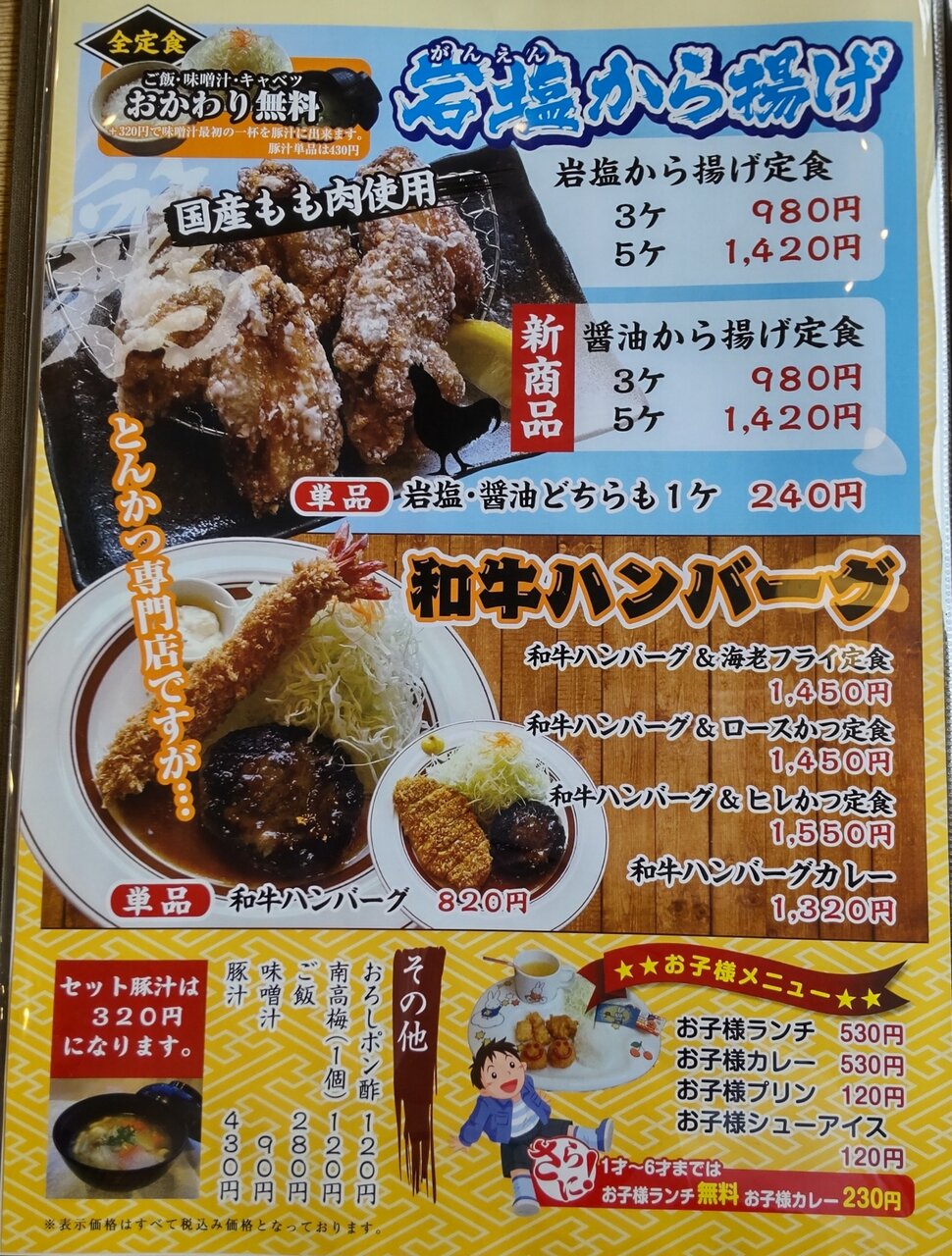 稲安ランチ B 15食限定 ロースカツ、唐揚げ、お刺身 (ごはん・みそ汁・小鉢・漬物・コーヒー付) 1200円