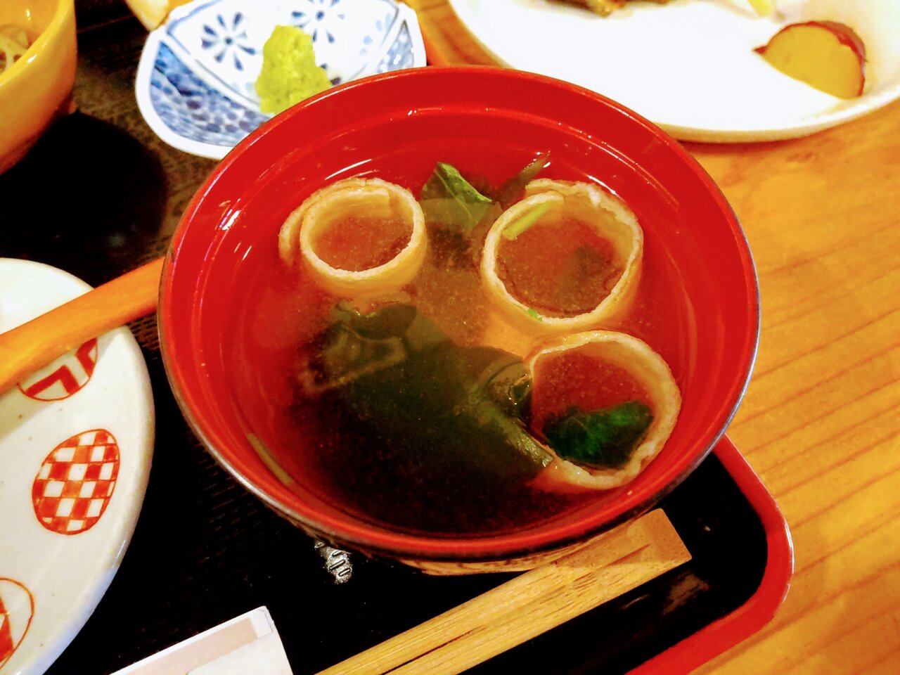 お豆腐と、お揚げと、ワカメのお味噌汁さん🍀