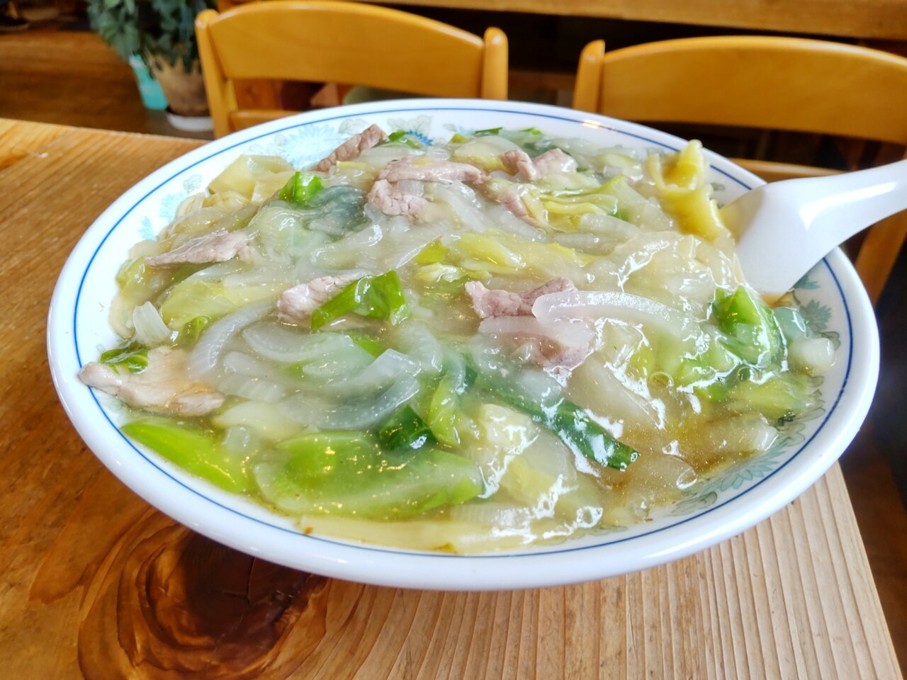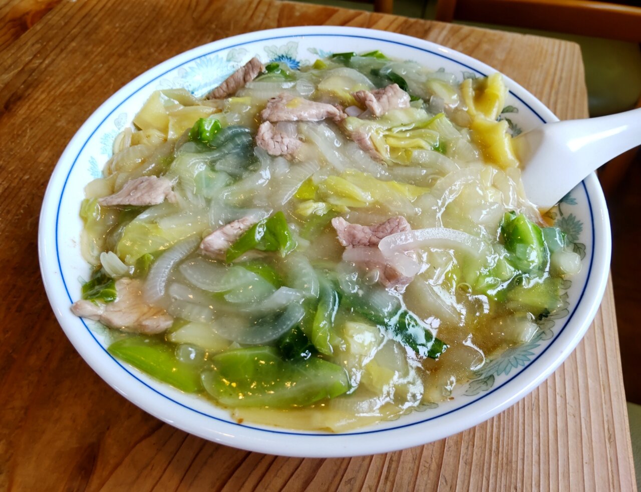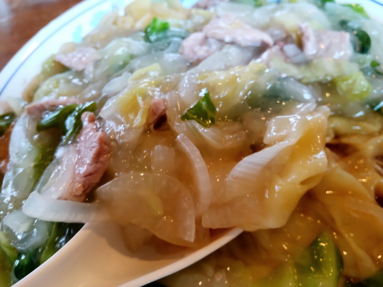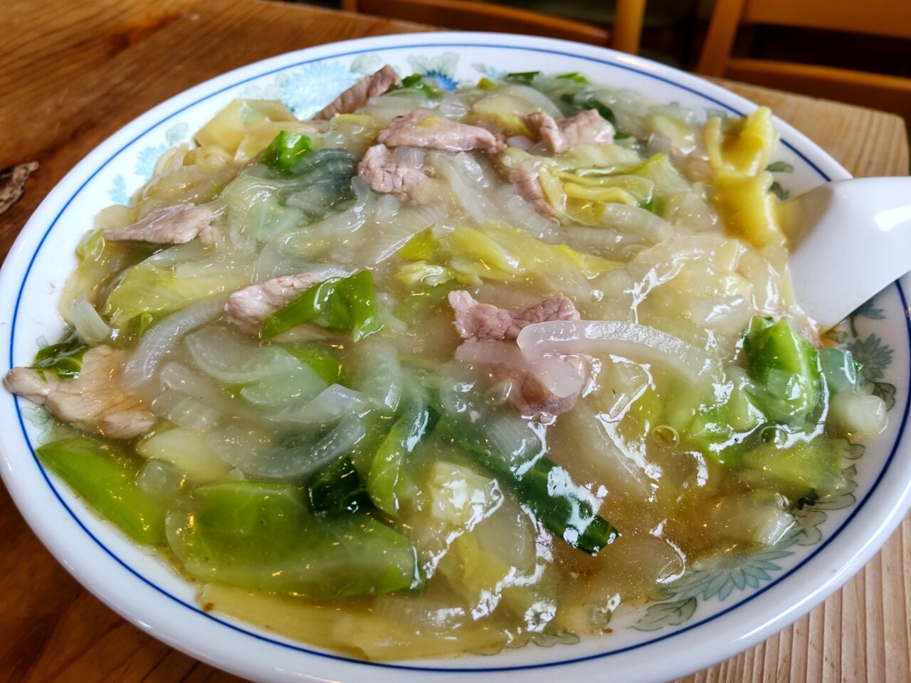 キャベツ🥬や、玉葱🧅や、ネギ、豚肉さん達の餡掛けで、うんまい❗️✨🥰🍀