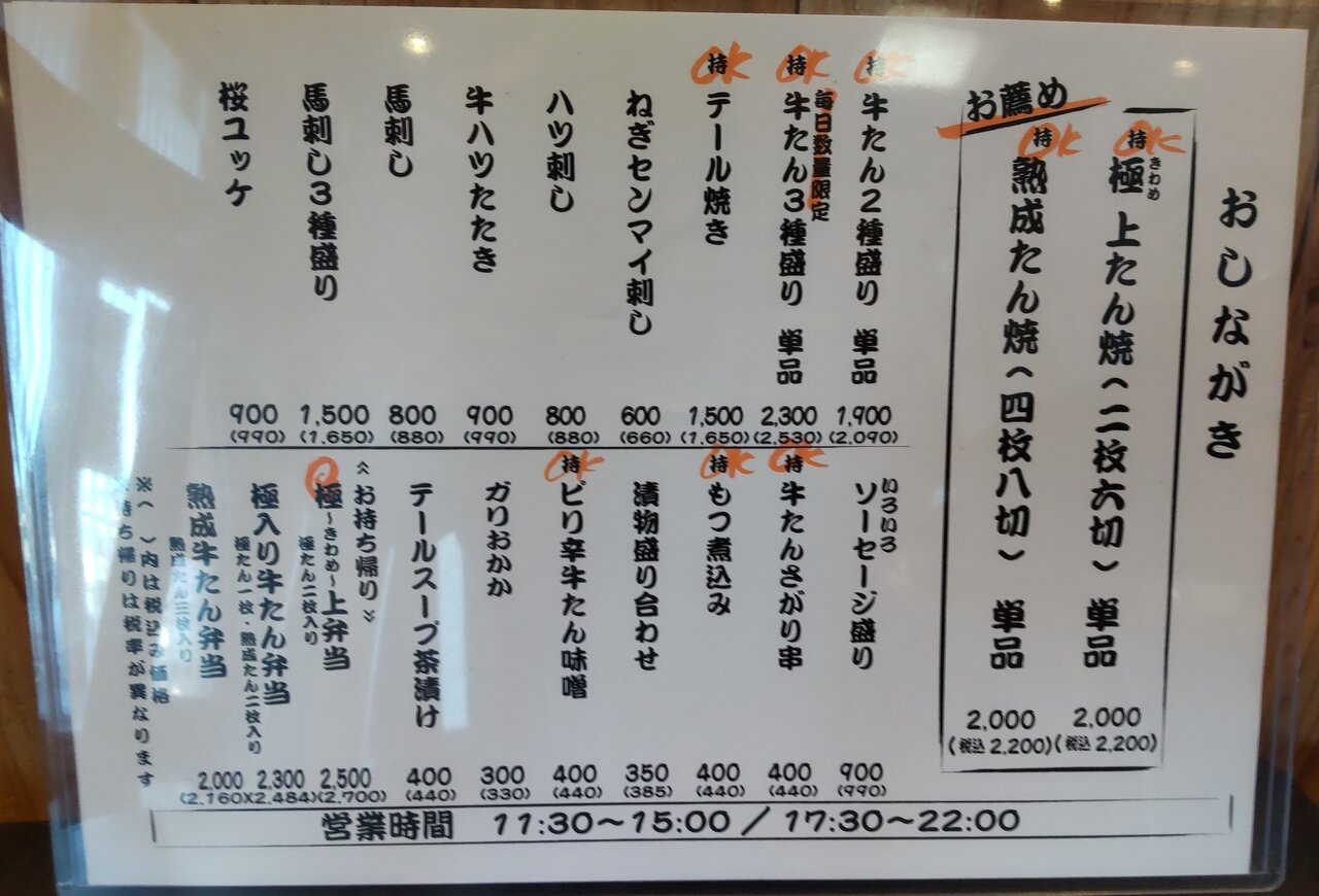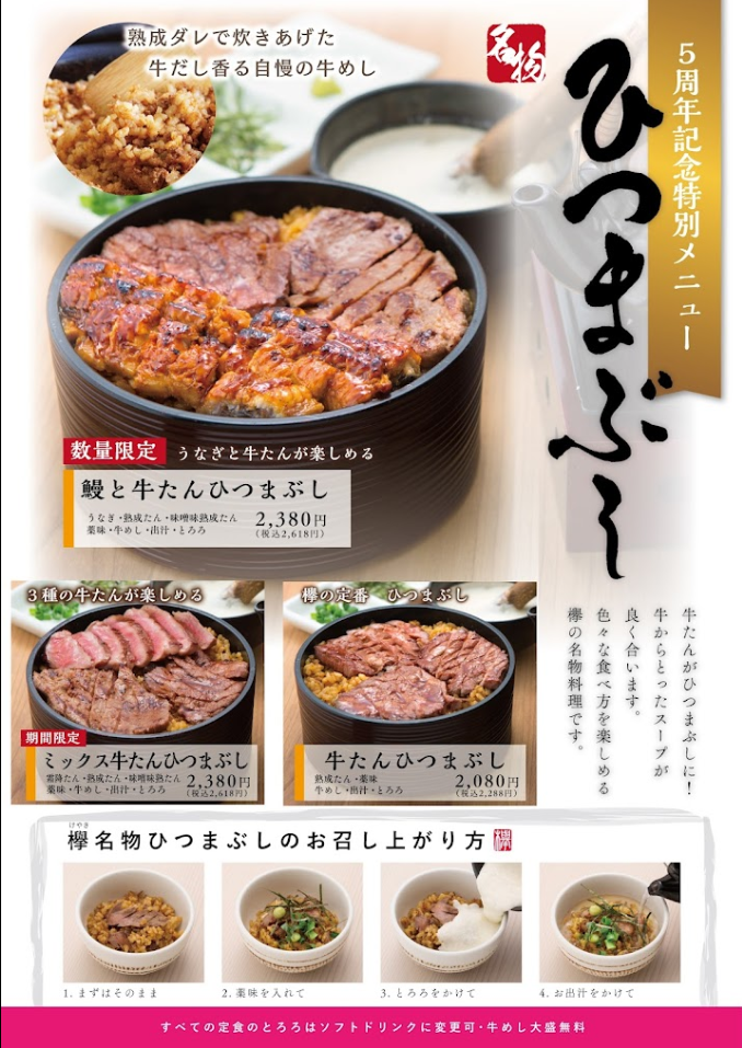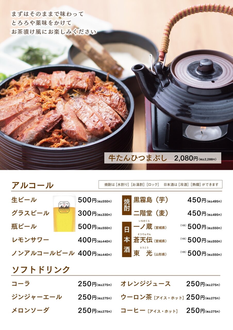 うなぎ、熟成たん、味噌熟成たん、薬味、牛めし、出汁、とろろ📋️