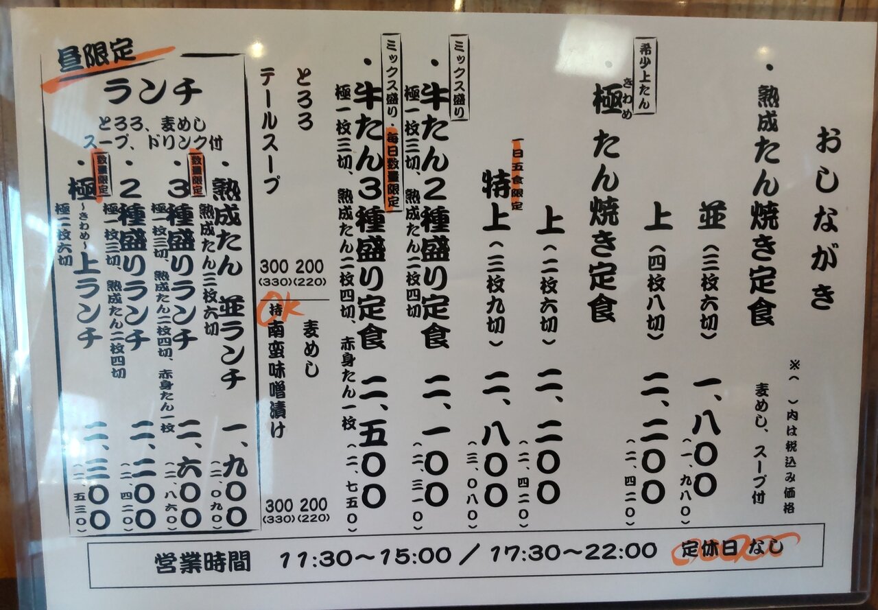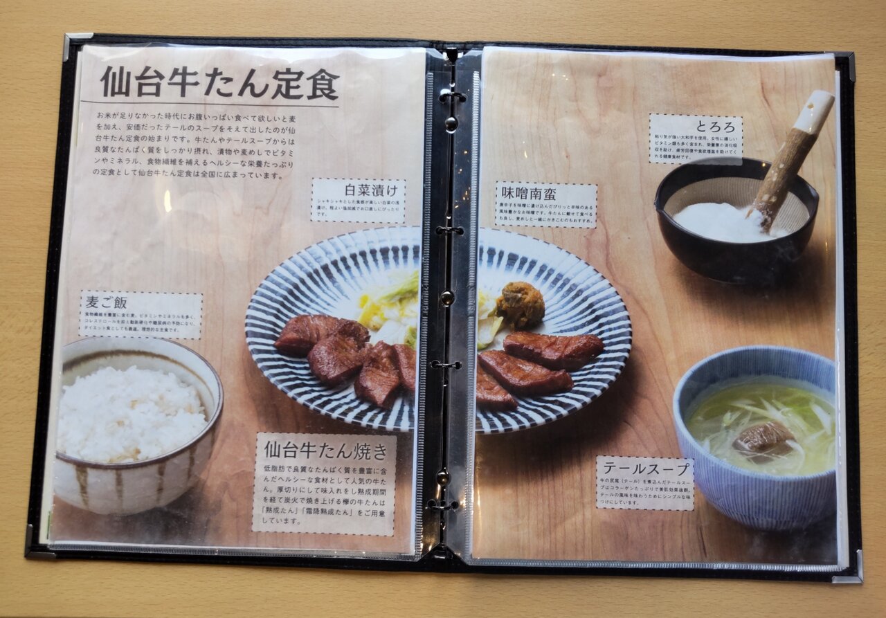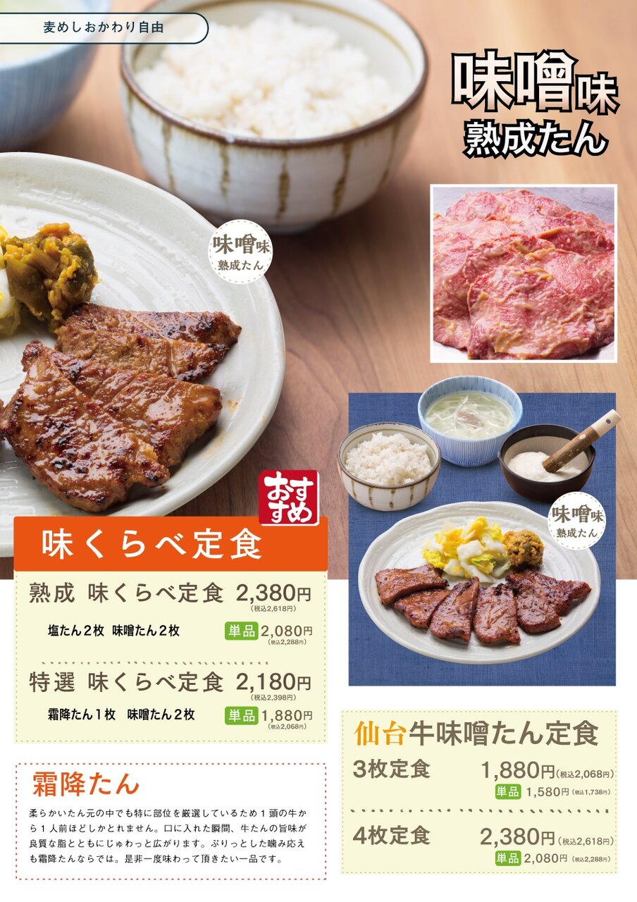 霜降たん、熟成たん、味噌熟成たん、薬味、牛めし(大盛り可能)、出汁、とろろ📋️