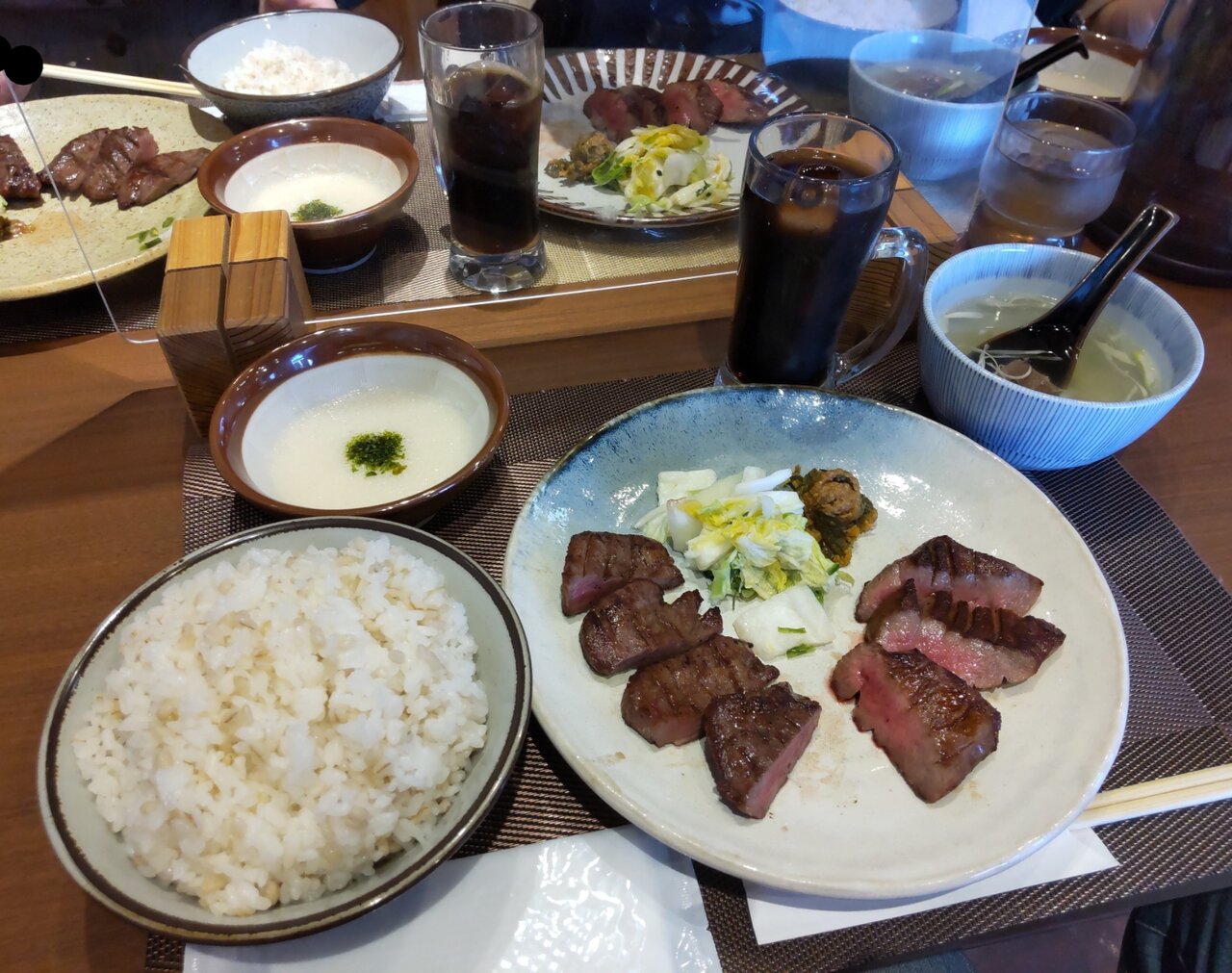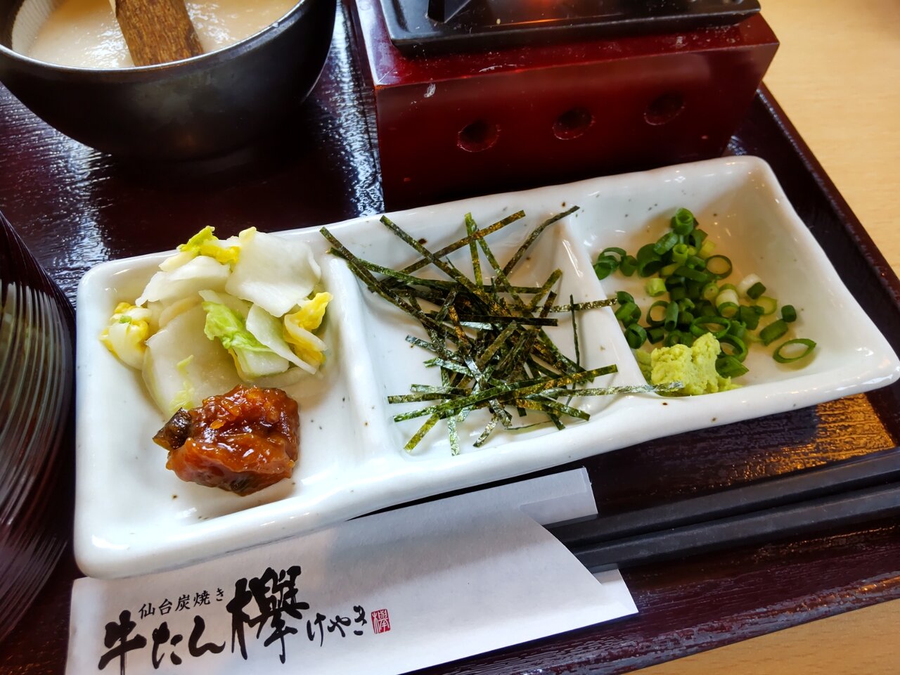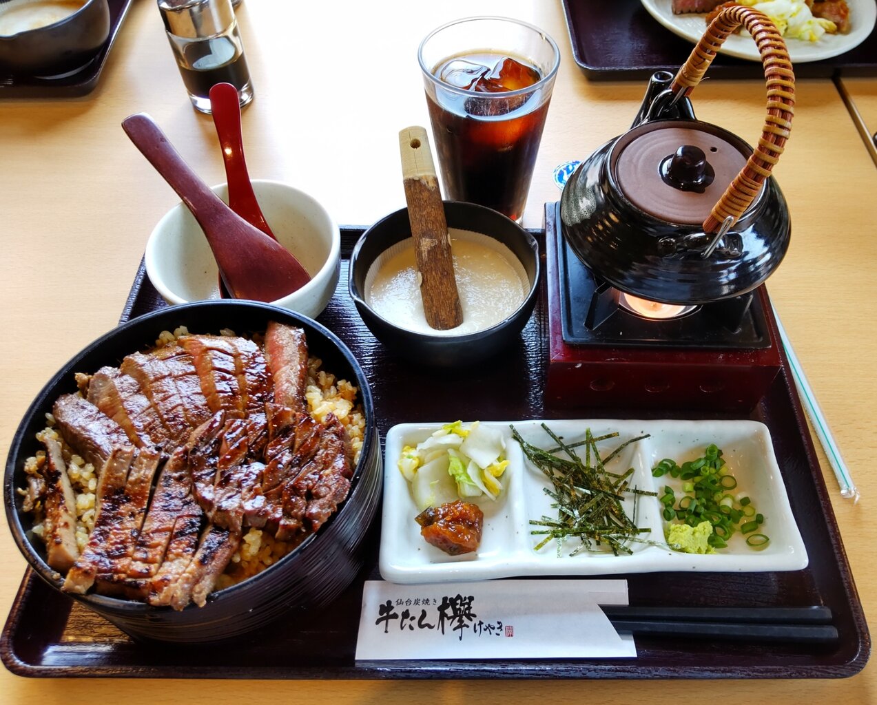 霜降たん、熟成たん、味噌熟成たん、薬味、牛めし(大盛り可能)、出汁、とろろ📋️