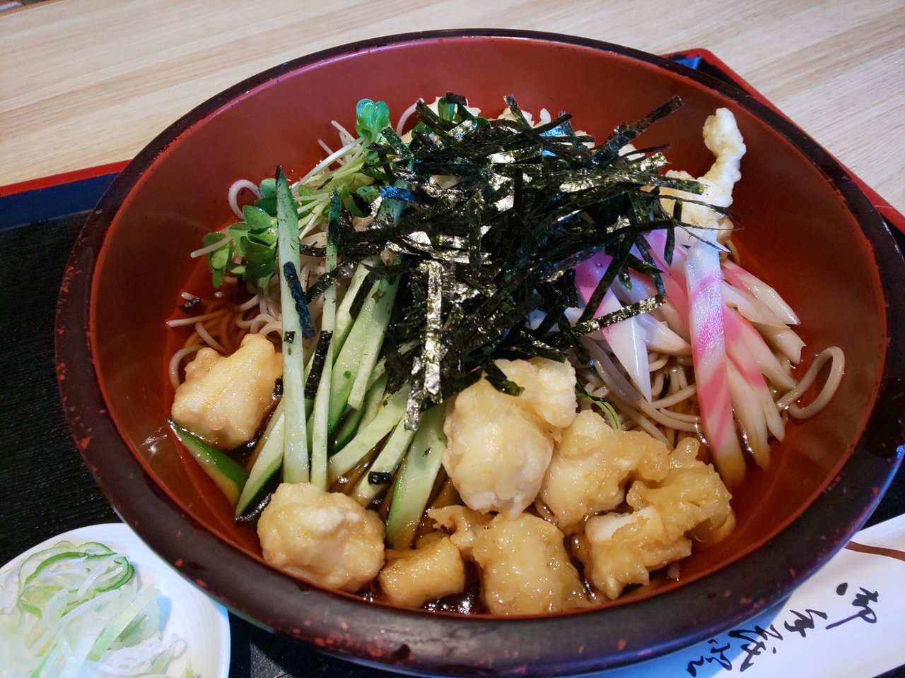 冷やしたぬきそば 800円 大盛り100円 合計 900円也