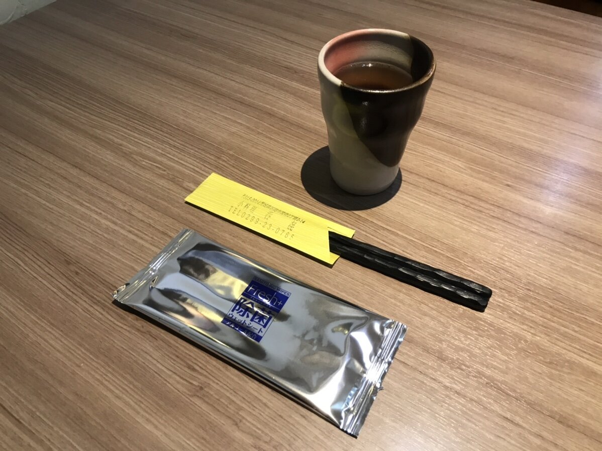 お水と、おしぼりと、お箸が来ました🛬