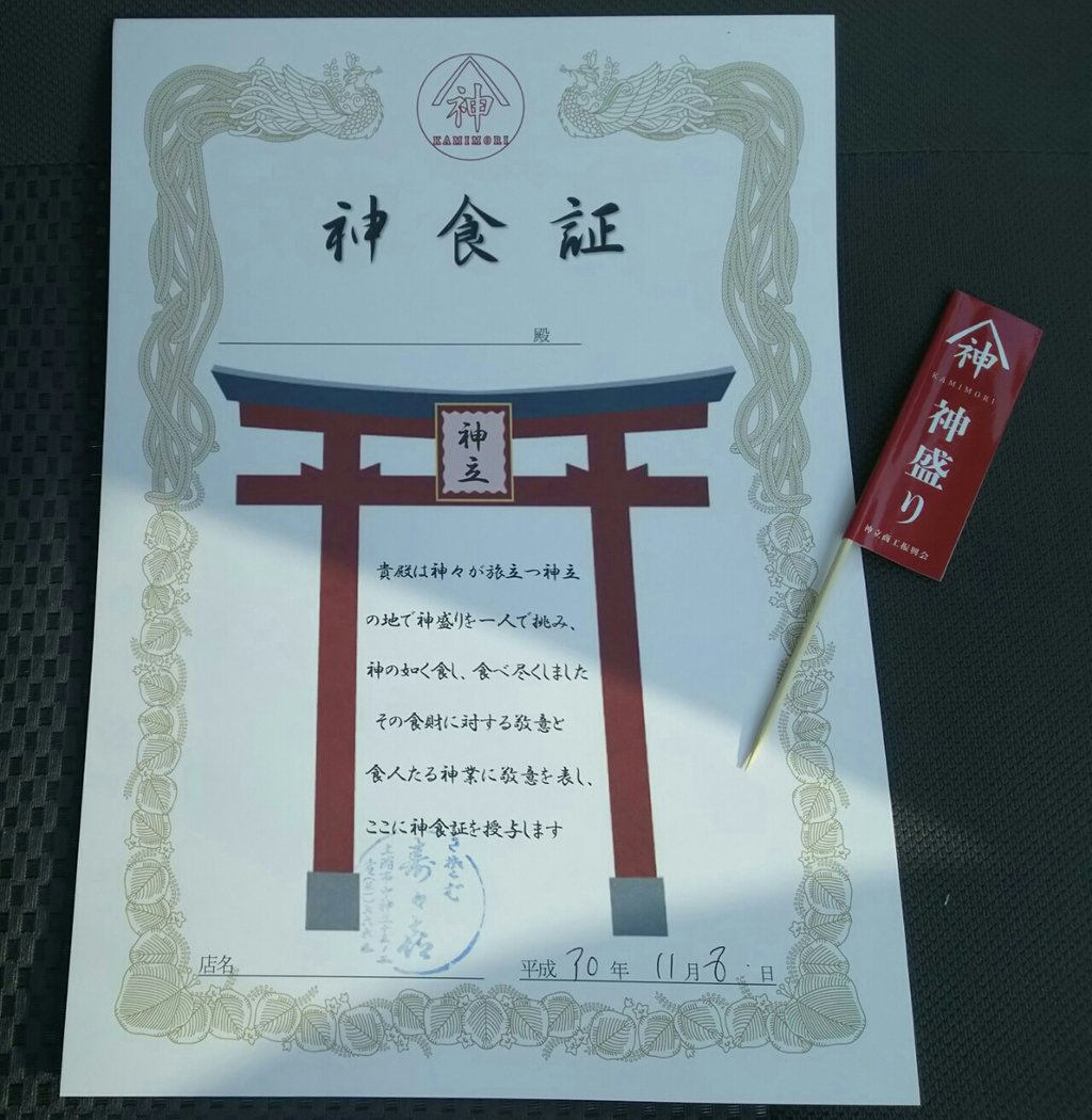 しかも、デカ盛りの完食証