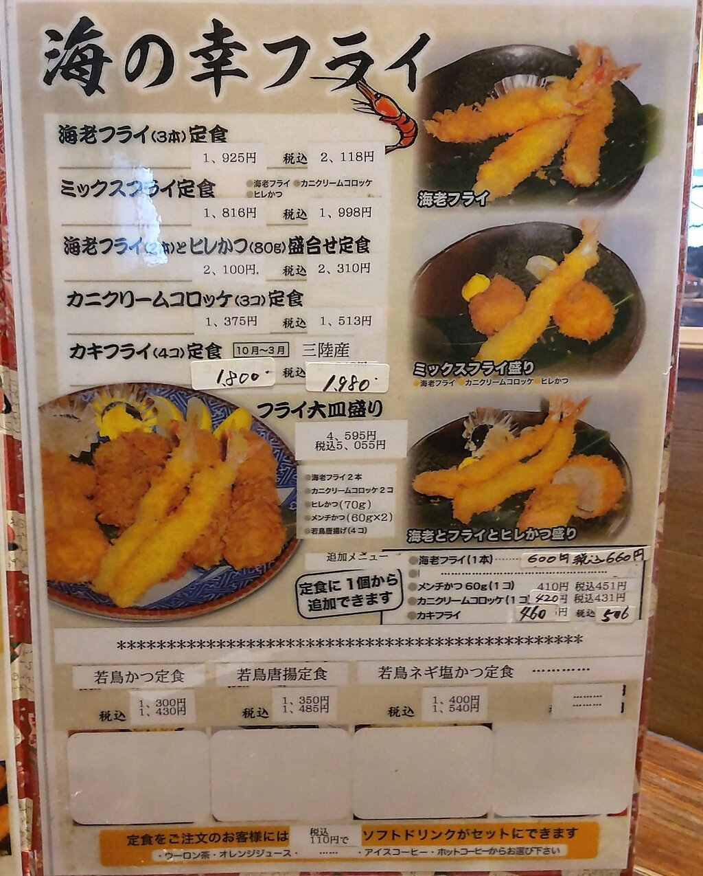 鶏唐揚げ、ミックスフライ、すき焼き定食、牛ロース焼定食でメモっていたお食事処です🏠️🔰