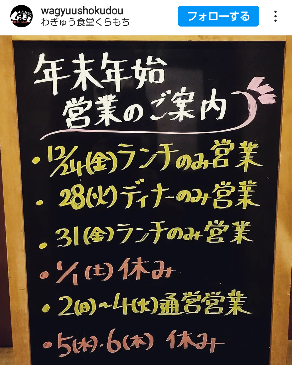 👆️お店のインスタグラムより、2021年、年末年始の営業予定です📅🎍