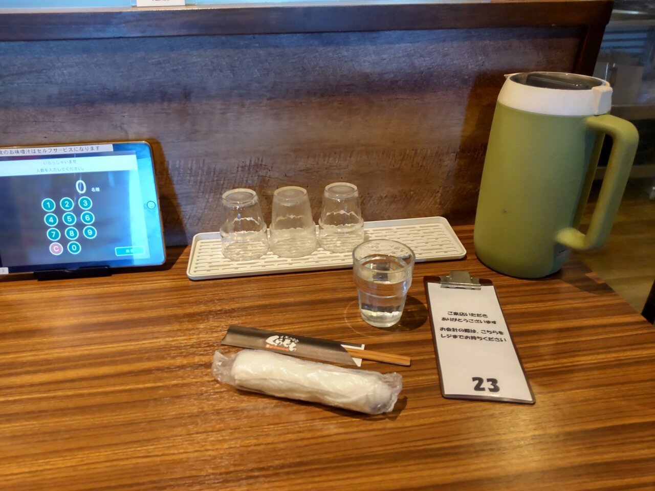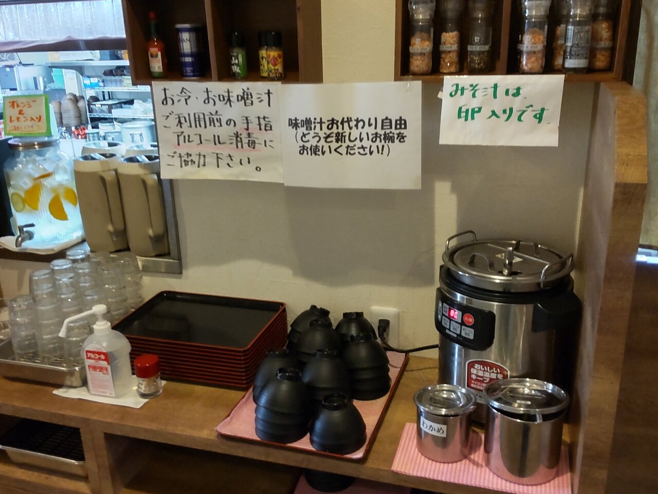 アルコール除菌と、おかわり自由、その際、新しいお椀が使えるのは良いね👍💮