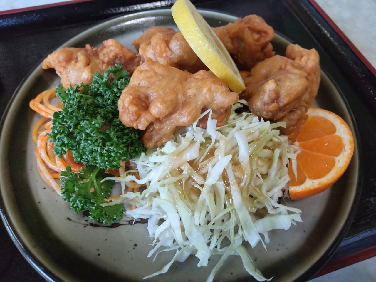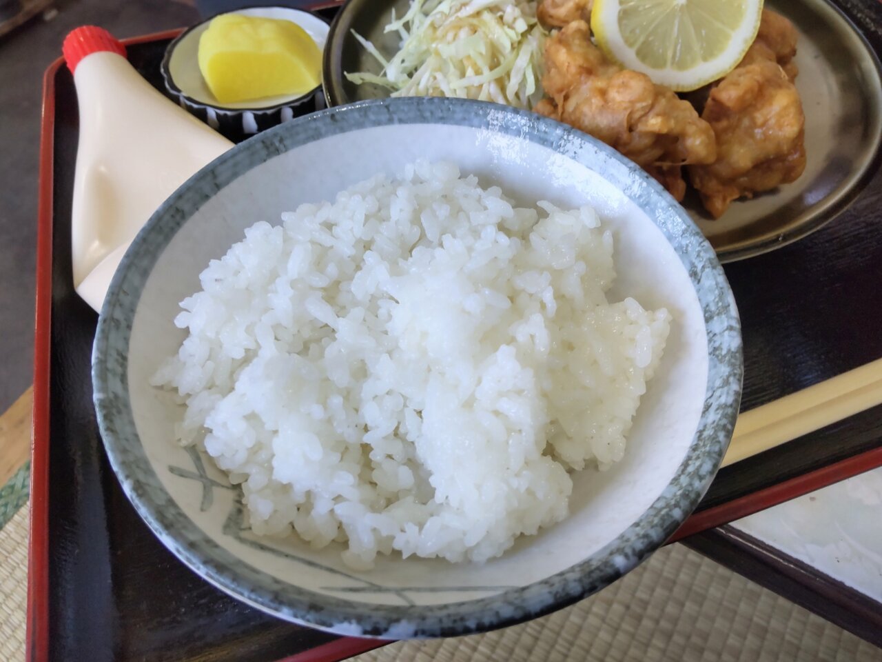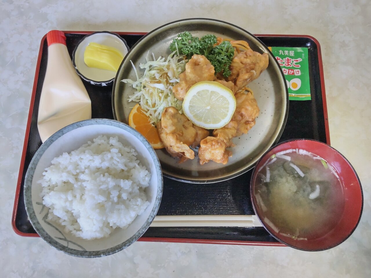 おっ❗️お手本的な鳥唐揚定食ですね🎵