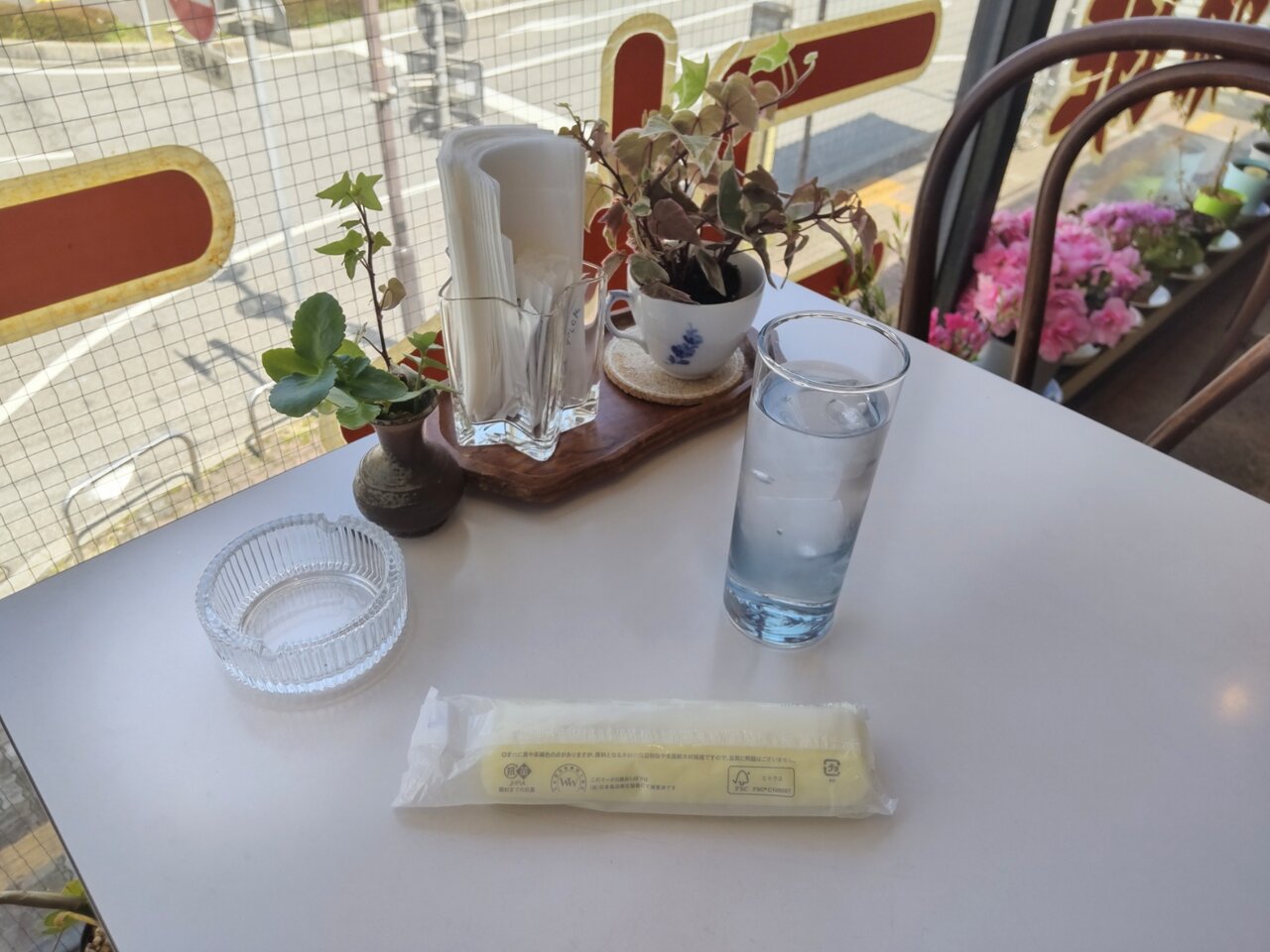 お水と、おしぼりと、茹で玉子🥚が来ました🎵